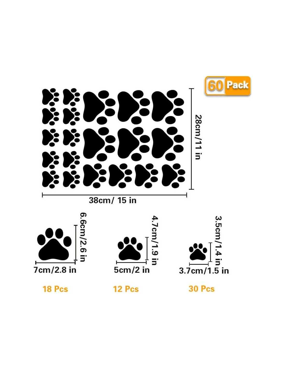 - El paquete incluye: 3 pcs adhesivos de pared que incluyen 18 pcs huellas de perro grandes (2.8 x 2.6 PULGADAS), 12 pcs huellas de perro medianas (2 x 1.9 PULGADAS), 30 pcs huellas de perro pequeñas (1.5 x 1.4 PULGADAS), color: negro.