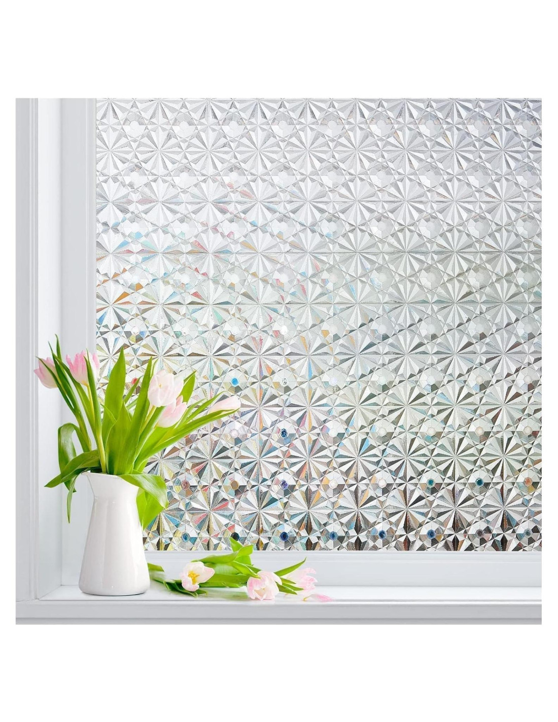 - Diseño de Diamante 3D y Privacidad: Mejora tus ventanas con impresionantes efectos de diamante 3D, ofreciendo un 96% de privacidad. Di adiós a las miradas curiosas, evitando que los perros ladren mientras añades un toque de elegancia decorativa. Perfecto para salas de estar, dormitorios y oficinas, el tamaño más grande proporciona una cobertura más amplia para ventanas de bahía o puertas de patio.