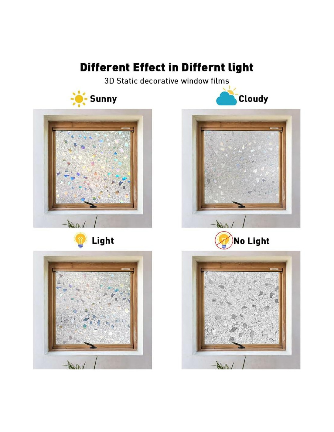 - Apariencia Hermosa: La película para ventanas tiene un patrón de vidrio de pequeñas piedras rotas lujoso y colorido, que puede cambiar instantáneamente cualquier espacio. Los intrincados grabados y el diseño conciso.