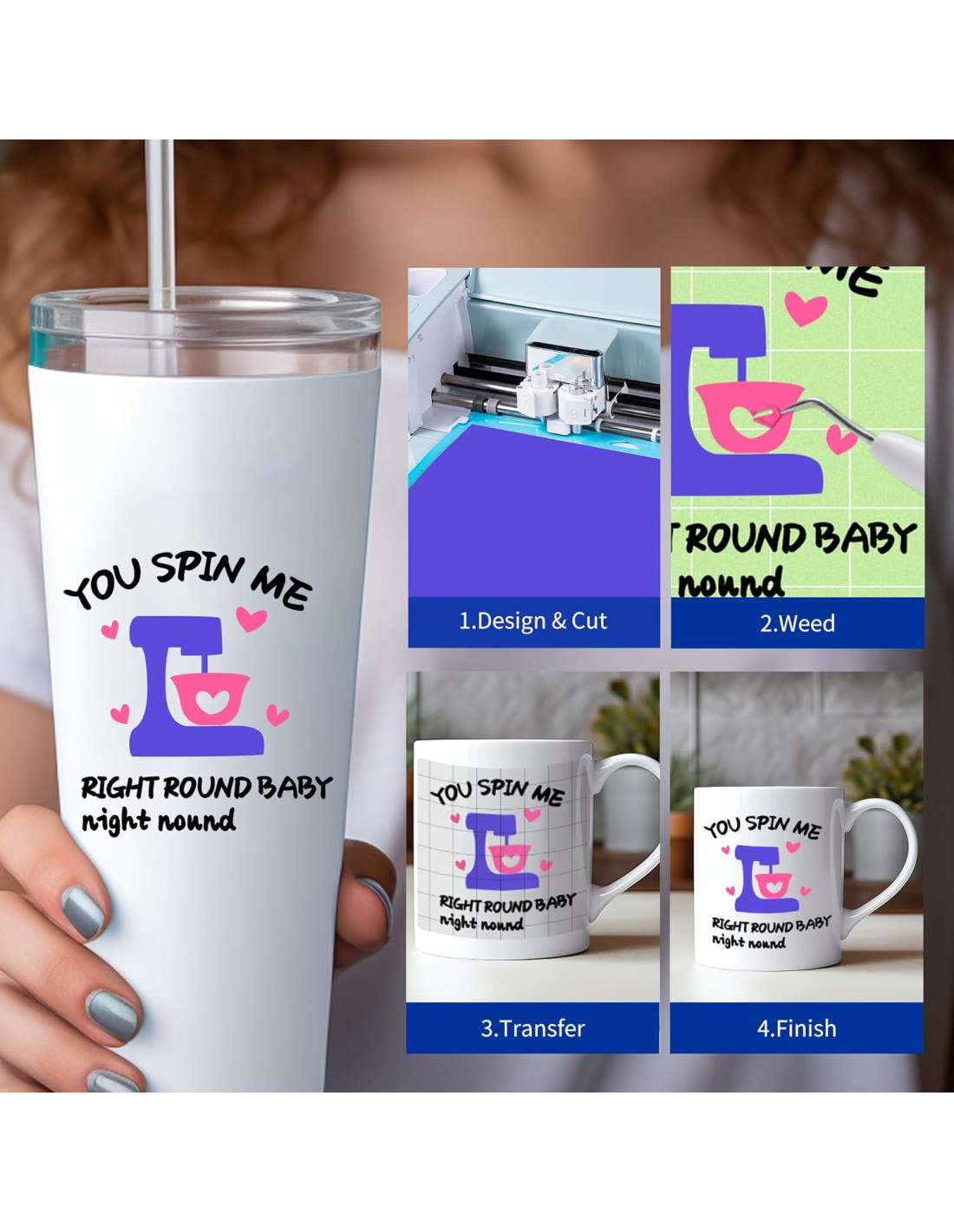 - FÁCIL DE CORTAR, DESHERBAR Y TRANSFERIR. Este Vinilo Adhesivo Permanente ha sido probado y fabricado con el grosor adecuado, lo que lo hace conveniente para varias máquinas de corte. Incluso los principiantes pueden desherbar y transferir este vinilo fácilmente.