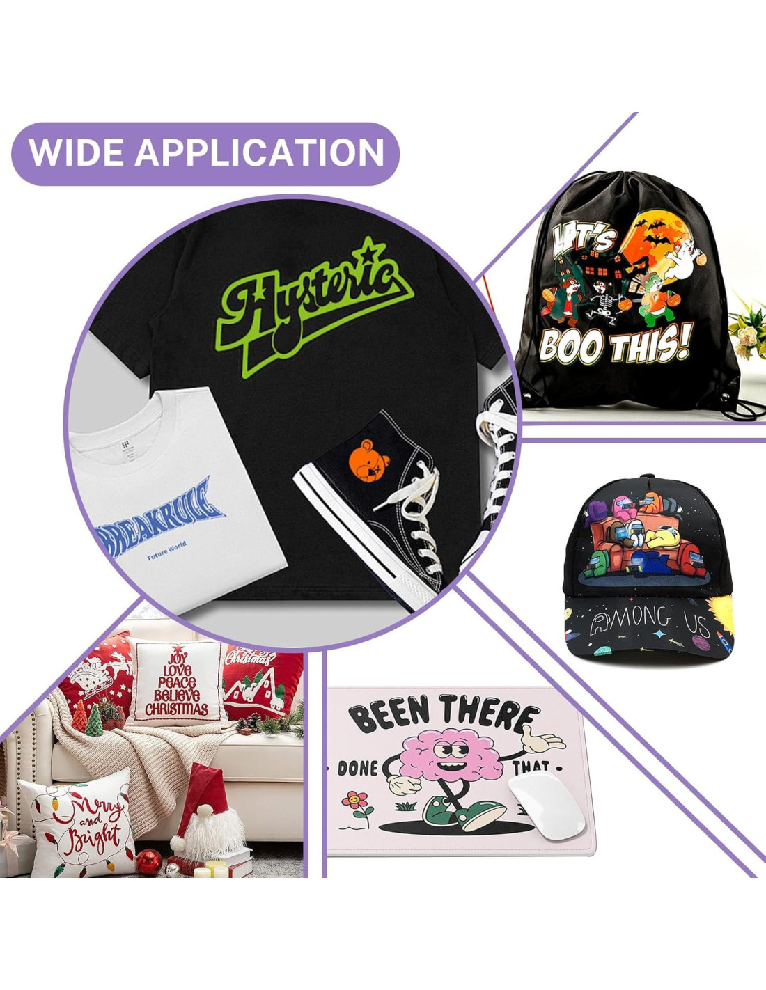 - Material de Alta Calidad: Hecho de materiales PU superiores, presenta gran adherencia y elasticidad, fácil de desmalezar y transferir, lavable a máquina, aplicable en telas de algodón, poliéster, mezcla de algodón, licra y otros textiles de alta resistencia, etc.