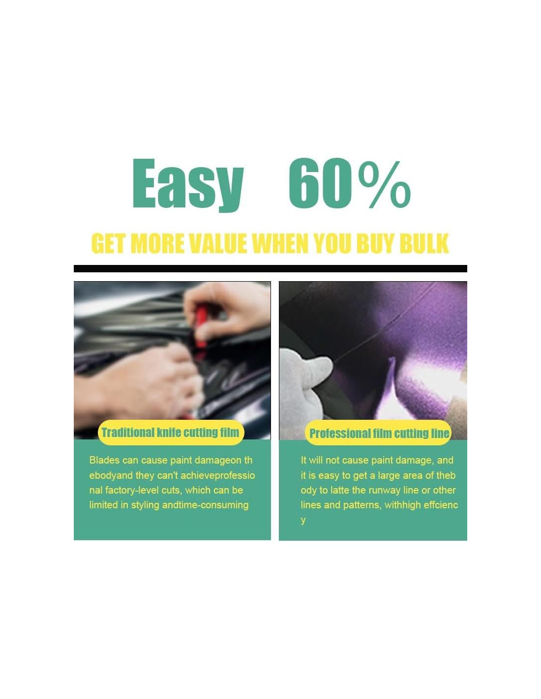 - [Fácil de usar] : Usar la cinta para envoltura de automóviles no requiere herramientas agudas, simplemente posiciona con precisión la cinta en el área a cortar, luego usa un raspador o herramienta similar para aplicar la película, después, dobla la cinta a unos 5 milímetros de la película del automóvil, presiona los bordes de la cinta y la película del automóvil con tus dedos al mismo tiempo, y tira rápidamente y con fuerza de la línea delgada para completar el corte, acortando significativamente el tiempo de construcción y ahorrando tiempo y esfuerzo.
