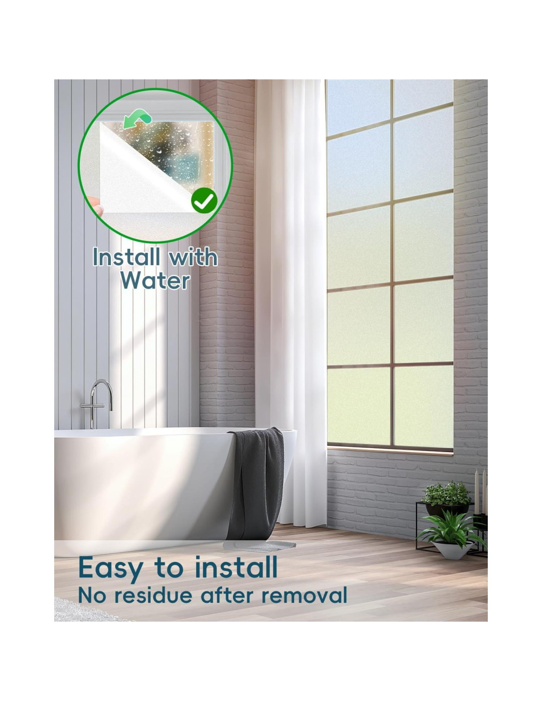 - Disfruta de Privacidad y Luz Suave: Nuestra película de ventana de vidrio esmerilado asegura tu privacidad creando un elegante efecto de vidrio esmerilado, evitando que ojos curiosos vean dentro mientras permite que la luz natural cómoda llene tu espacio, ideal para oficina, película de privacidad para ventanas de baño de día y de noche, o cualquier habitación donde se desee privacidad pero también se necesite luz suave.