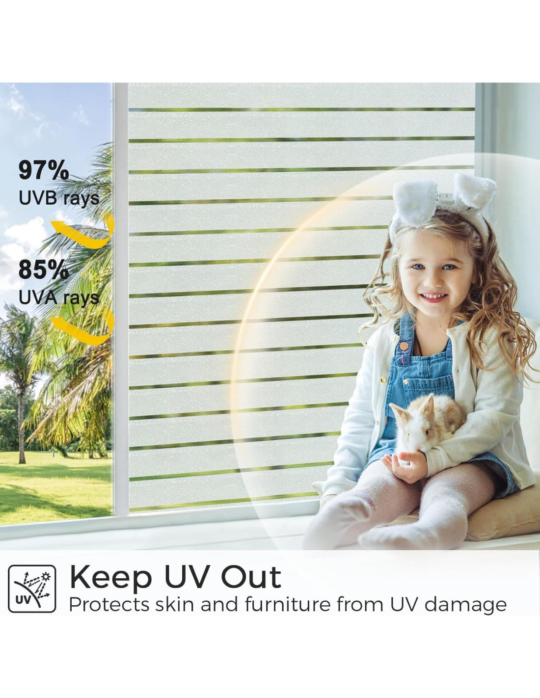 - [BLOQUEO DE UV] La película de privacidad para ventanas puede bloquear el 97% de los dañinos rayos UVB y el 85% de los dañinos rayos UVA, previene el desvanecimiento de los muebles y permite una luz suave para tu habitación.