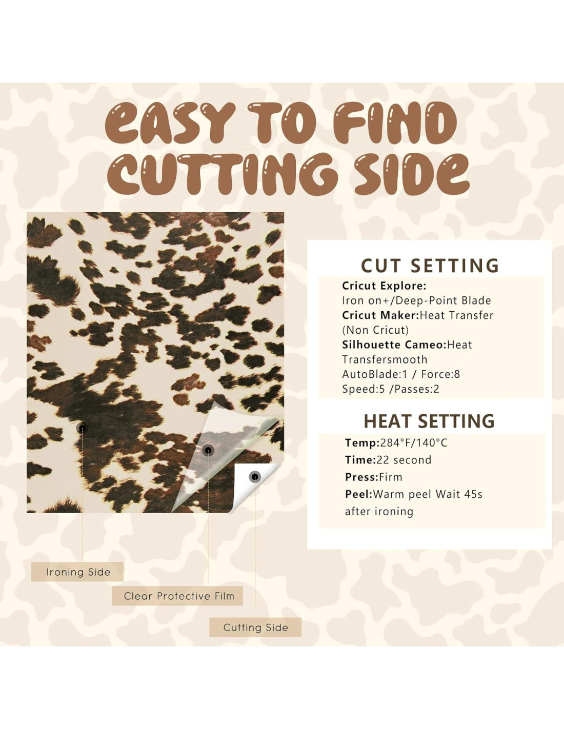 - Diseño y Color Único: Este vinilo HTV de piel de vaca totaliza 6 hojas, Cantidades Suficientes para que Crees tus Manualidades DIY