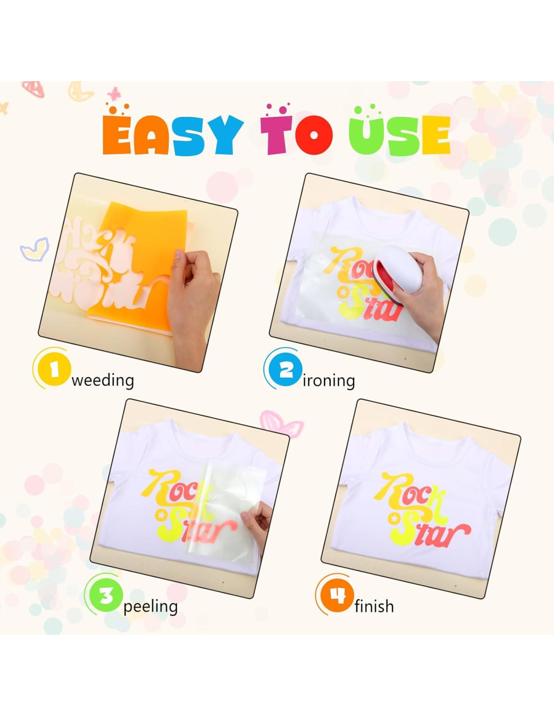 - Experimente la magia del HTV Neón. Nuestro Vinilo de Transferencia de Calor Neón hará que su ropa luzca impresionante de día o de noche. Los colores neón destacan en luz brillante y brillan en luz negra, añadiendo un toque único a sus festividades. Nuestro vinilo de alta calidad es fácil de usar, ¡así que deje que su creatividad brille con infinitas posibilidades de bricolaje!