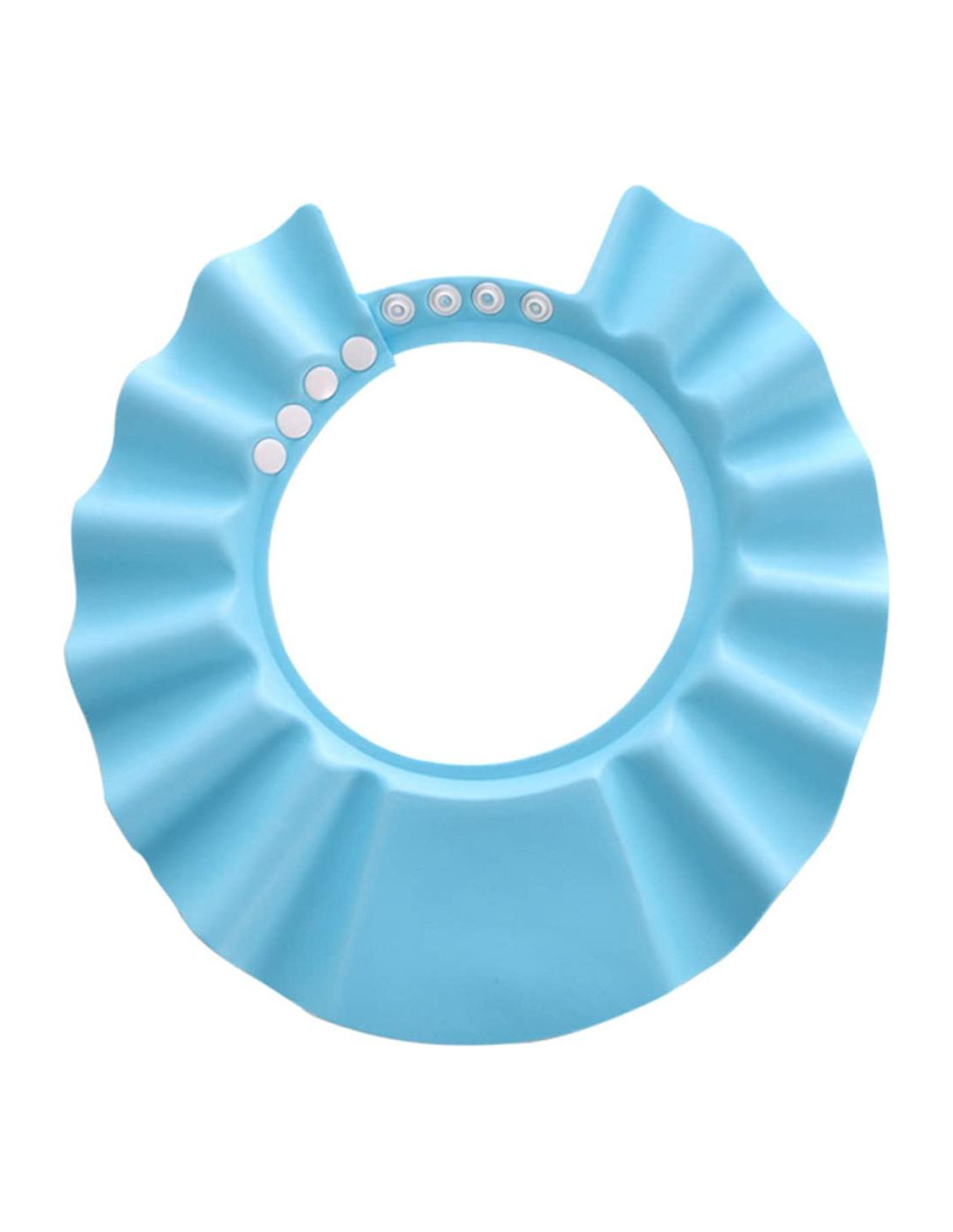 Descripción No absorbe agua, fácil de limpiar, solo usa agua para lavarlo. Nunca te preocupes por reemplazar constantemente el visor de baño de tu hijo debido a mala calidad o tamaños inadecuados. También es perfecto para recortar, cortar y peinar el cabello. Color brillante y lindo, cómodo y flexible. A tu bebé le encantará. Ideal para el tiempo de baño y ducha. Características Gorro de ducha para bebé -Color: Azul. -Material: EVA. -Tamaño: Circunferencia de cabeza 40-55cm/15.7-21.6 pulgadas. -Adecuado para niñas, niños, bebés, niños pequeños y también para niños. Paquete que incluye 1 * Gorro de baño