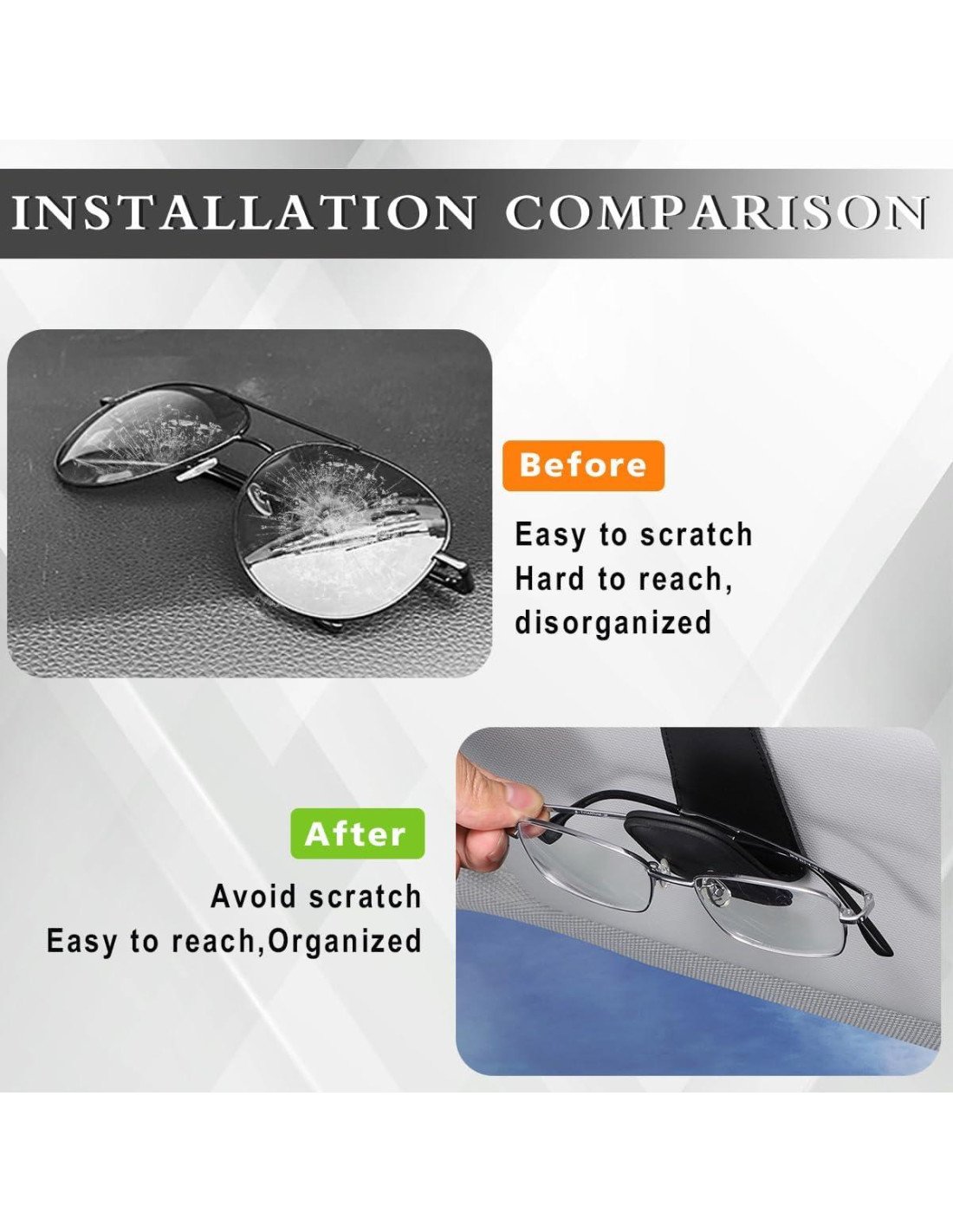 - Instalación y Operación Sencilla: Solo clipa el clip de gafas de sol en la visera del coche para organizar bien tus gafas de sol. Puedes recoger o colocar fácilmente tus gafas.