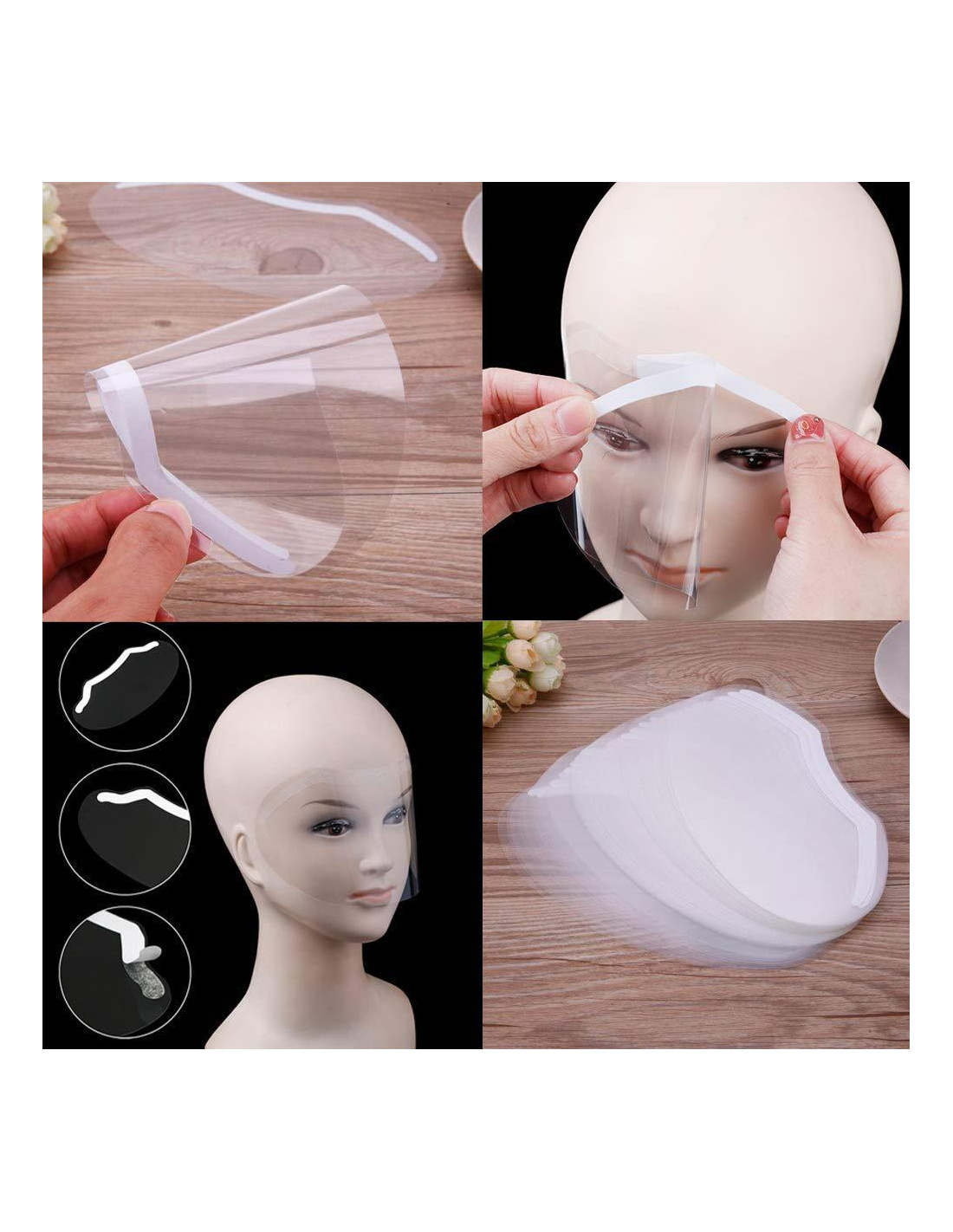 - Protección Facial y Fácil de Usar: Los visores faciales pueden proteger la cara de los clientes al usar laca para el cabello o perfumes, recortando flequillos, coloración de cabello caliente. Adecuado tanto para uso en casa como en salón. Solo limpie la frente, retire la cinta adhesiva blanca, adhiera a la cara, justo por encima de las cejas y retire de la cara y deséchelo cuando haya terminado.