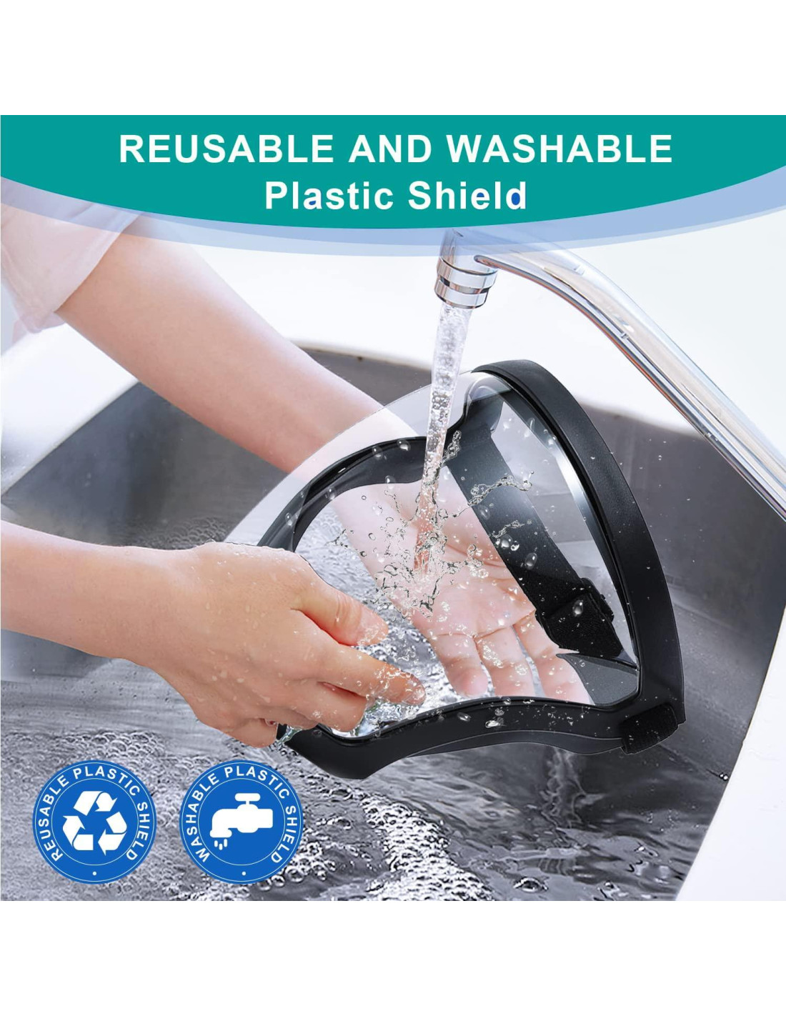 - REUTILIZABLE Y LAVABLE: Esta máscara facial transparente está hecha de material de alta calidad, duradera y no fácil de rayar, se puede lavar con jabón y agua después de cada uso, tiene una larga vida útil y no es fácil de deformar y rasgar, está diseñada con resistencia y durabilidad, puede garantizar una protección duradera sin comprometer la calidad, puedes contar con ella