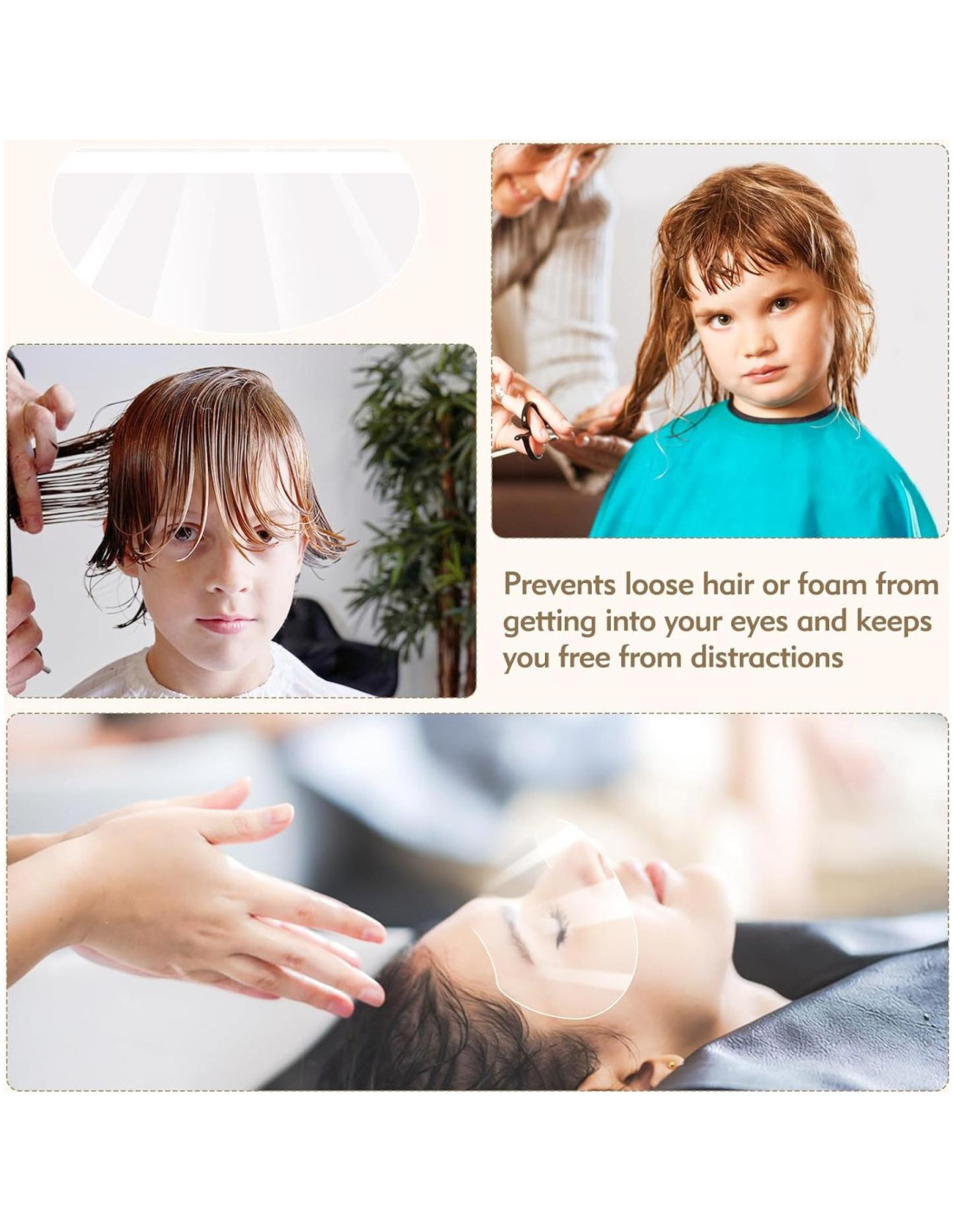 - [PRÁCTICO] -- Puede prevenir que el agua entre en tus ojos al ducharte, evitar que el cabello caiga en tus ojos al recortarte en la peluquería, y también proteger la cara de tus clientes de laca para el cabello, tinte para el cabello u otros productos.