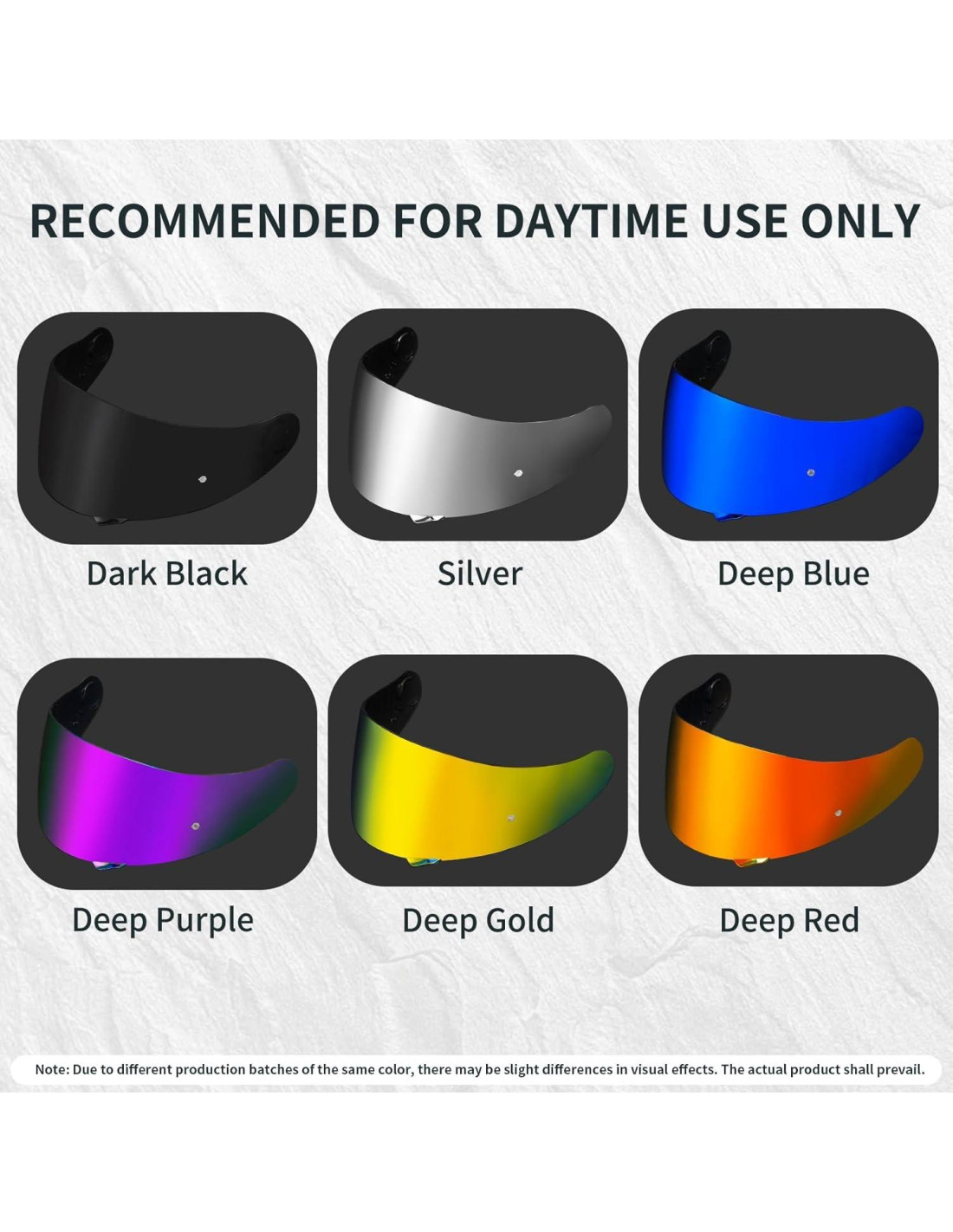 - Nota La visera ahumada gt air 2 está hecha de un solo molde y no está específicamente ajustada para la curvatura de la máscara para un casco de tamaño específico como la PIEZA OEM, por lo que puede haber algunos espacios / ajuste inadecuado / fuga de ruido, etc. Este es un problema probabilístico y no todos los cascos tendrán este problema, ¡por favor tenga en cuenta esto!