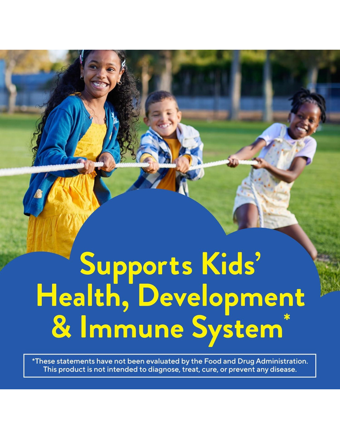 - La multivitamina para niños contiene 11 vitaminas y minerales esenciales, vitamina C y D para soporte inmunológico, vitamina A para soporte ocular y vitamina E para soporte antioxidante.