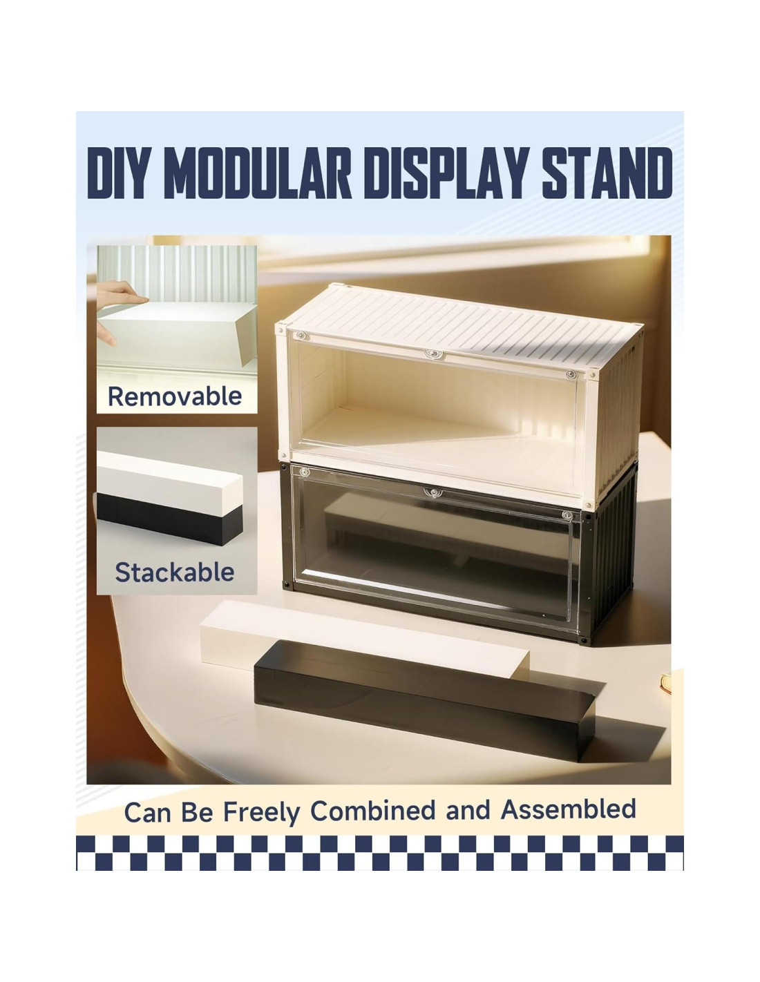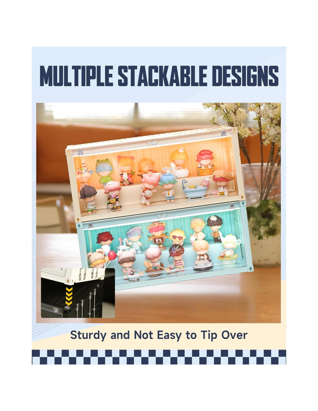 - [Diseño Apilable Interconectable] - La caja de exhibición soporta múltiples cajas apiladas, y se establecen ranuras de interconexión en la parte superior/inferior/lateral, lo que permite apilar de forma segura más de 3 contenedores horizontalmente/verticalmente. Crea una pared de exhibición llena de personalidad sin preocuparte por caídas o volcamientos.