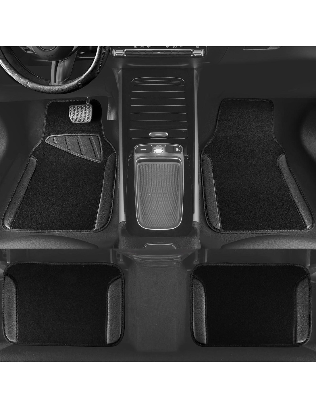 Set de una funda de volante, dos alfombrillas delanteras y dos alfombrillas traseras. Tamaño perfecto para la mayoría de sedanes, crossover, SUV, camiones y furgonetas. Recomendado para todos los propietarios de coches. Uso duradero. Se siente muy cómodo al conducir.