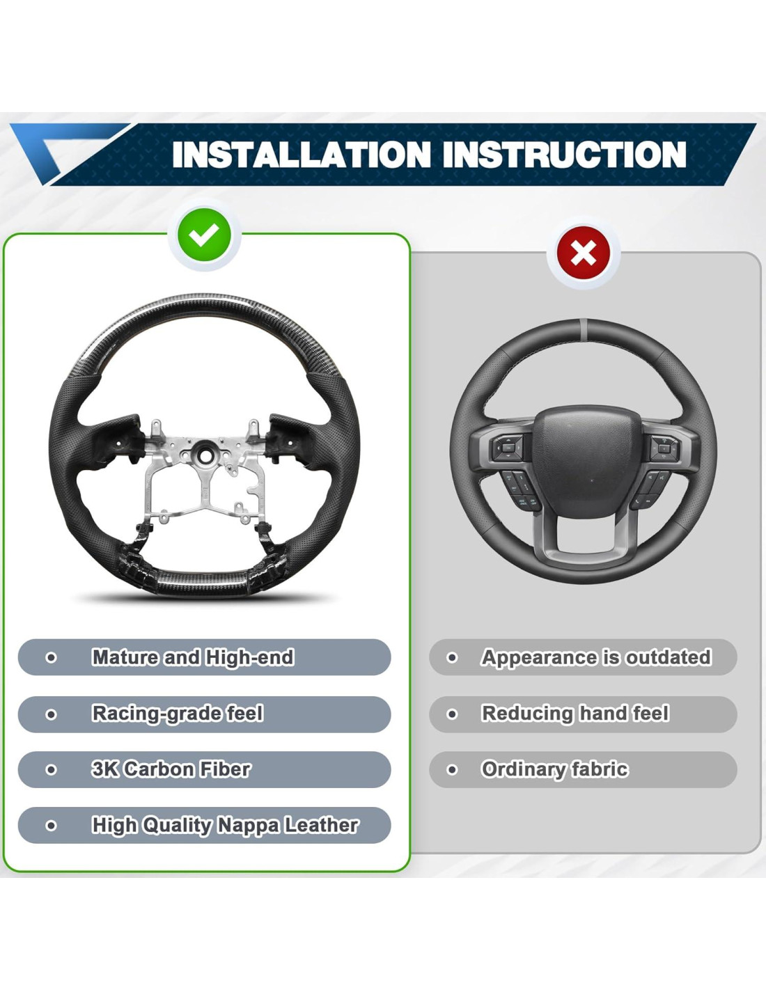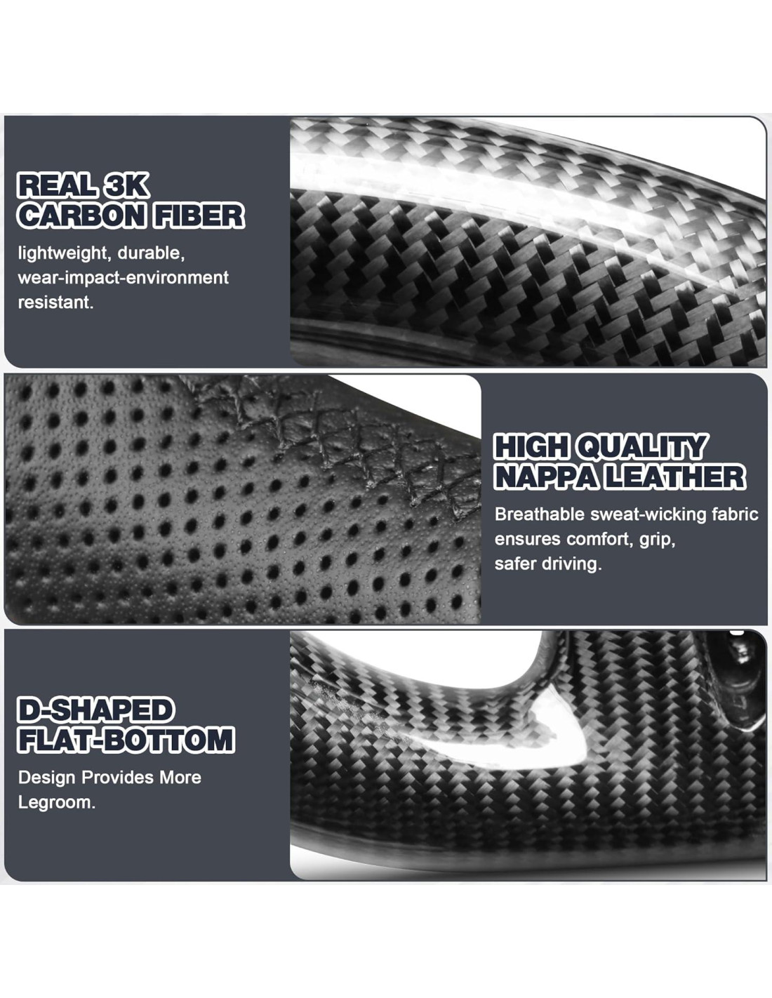 - Fácil Mantenimiento - La fusión de fibra de carbono y cuero Nappa resiste el desgaste y la decoloración de manera simple, requiere un mantenimiento mínimo, solo limpie con un paño suave. Incluye solo el volante (sin accesorios). Se recomienda la instalación profesional para obtener resultados óptimos.