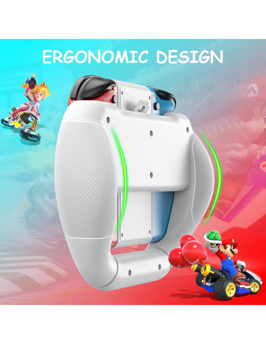 - [Compatible con Nintendo Switch y OLED] 2 Volantes de Carreras y 1 Agarre de Controlador Joy-Con compatibles con Nintendo Switch y Modelo OLED de Nintendo Switch 2021.