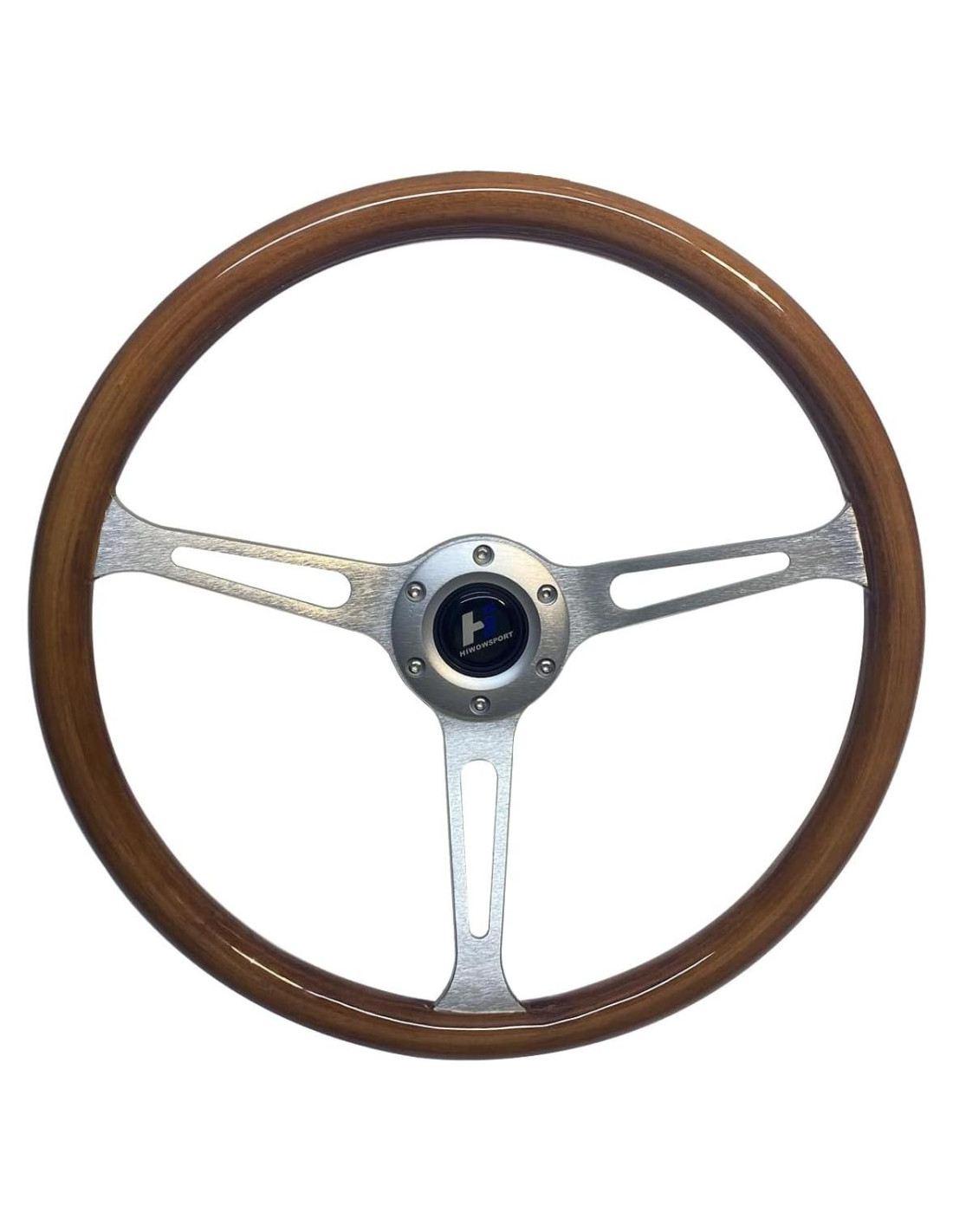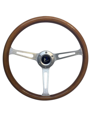 Hiracing15 pulgadas Volante de Madera 1.5pulgadas Profundidad Plateado Cepillado 3-Radios Clásico Volante de Madera 380mm Con Botón de Claxon 6 Tornillos