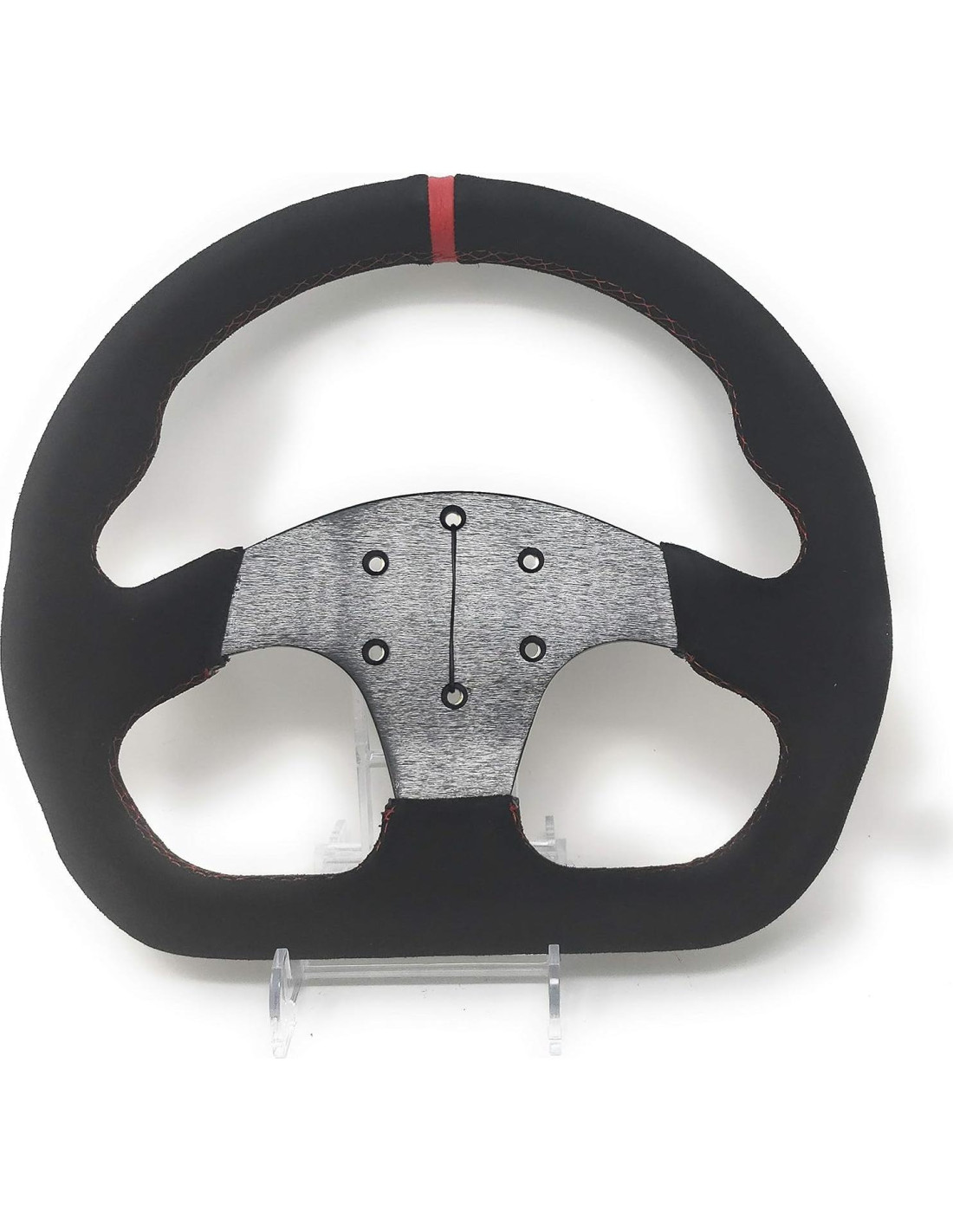 Volante de Suede -- 320mm (12.5 pulgadas) - Cuero Suede Negro con Costuras Rojas y Franja Central Roja - Radios Negros