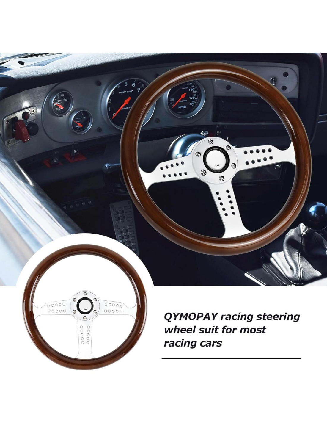 - Diseño de Moda: El diseño del volante QYMOPAY es simple, generoso y tiene una curva suave que se alinea con la curvatura de la palma. Al conducir, se ajusta perfectamente a la palma, brindándote placer al conducir. La combinación de colores y el diseño le dan al volante de madera un estilo nostálgico clásico.