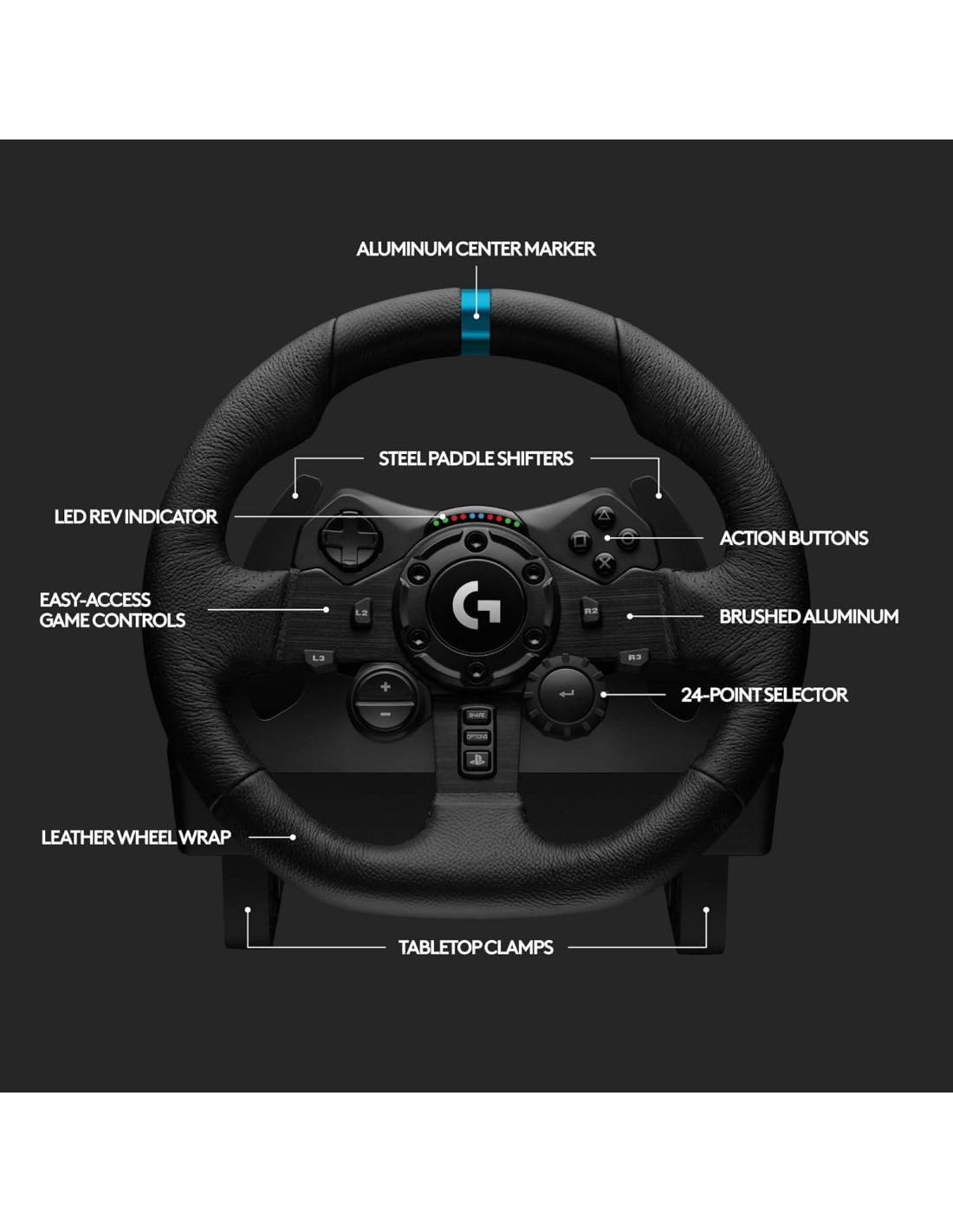 - Diseño de Carreras Premium: El diseño renovado del equipo Logitech G incluye materiales premium como una cubierta de volante de cuero negro cosido a mano y pedales de metal pulido; experimenta el placer de conducir en casa