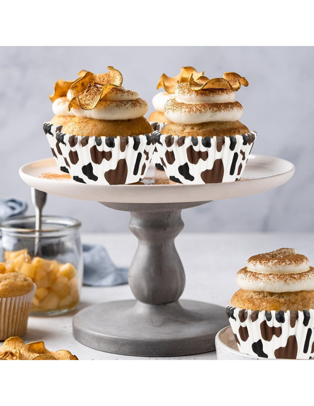 - Diseño de manchas de vaca - Aplicamos un diseño realista de manchas de vaca, cuando ves estos forros para cupcakes con diseño de vaca, puedes imaginar leche deliciosa y fragante simultáneamente, haciendo que tu postre o cupcake sea más atractivo.