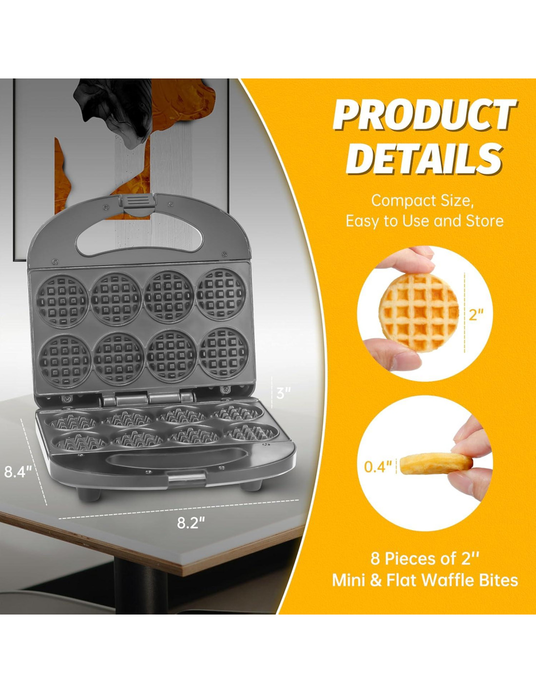 - [MULTI BOCADOS DE WAFFLE]: La máquina cocina hasta 8 pequeños bocados de waffle por tanda. A los niños les encantarán estos mini waffles lindos y sabrosos.