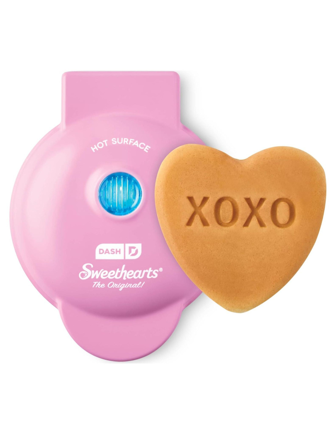 - MAQUINA DE WAFFLES EN FORMA DE CORAZÓN: Esta DASH x Sweethearts Mini Waffle Maker cocina mini waffles en forma de corazón de 4" con un mensaje de Sweethearts Candy!