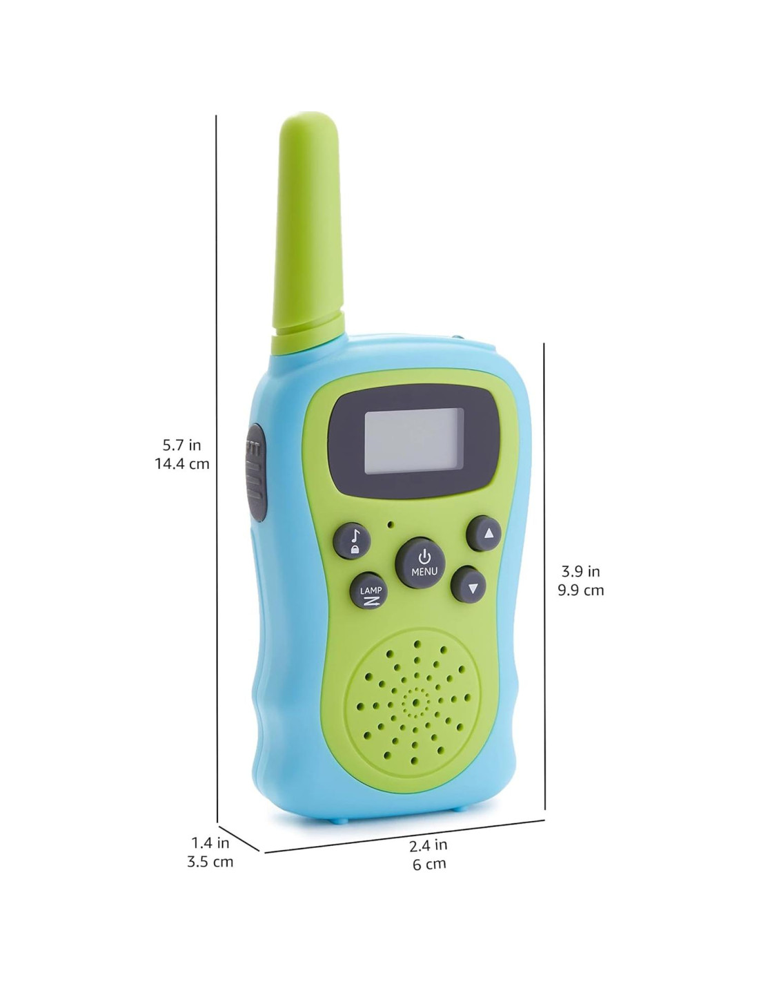 - Juguete walkie talkie (conjunto de 2) para niños; soporta comunicación 1 a 1 (o más); ideal para viajes de camping y tiempo de juego