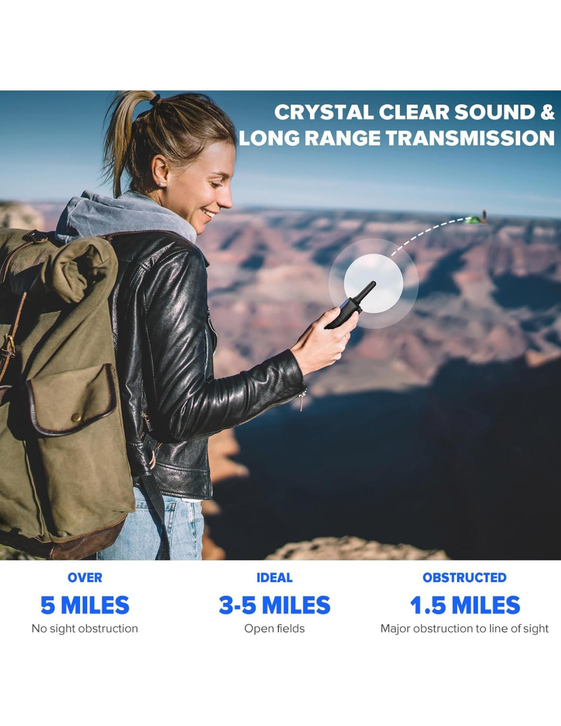 - TRANSMISIÓN DE LARGO ALCANCE Y SONIDO CRISTALINO - Con antena de ganancia helicoidal personalizada mejorada, super penetración y tecnología de transmisión sin pérdida. Puedes hablar claramente y tus hijos pueden escuchar claramente dentro de 1 milla (1.6 km) en el patio o en interiores. Comunicación de mayor alcance en áreas abiertas con poca o ninguna obstrucción.