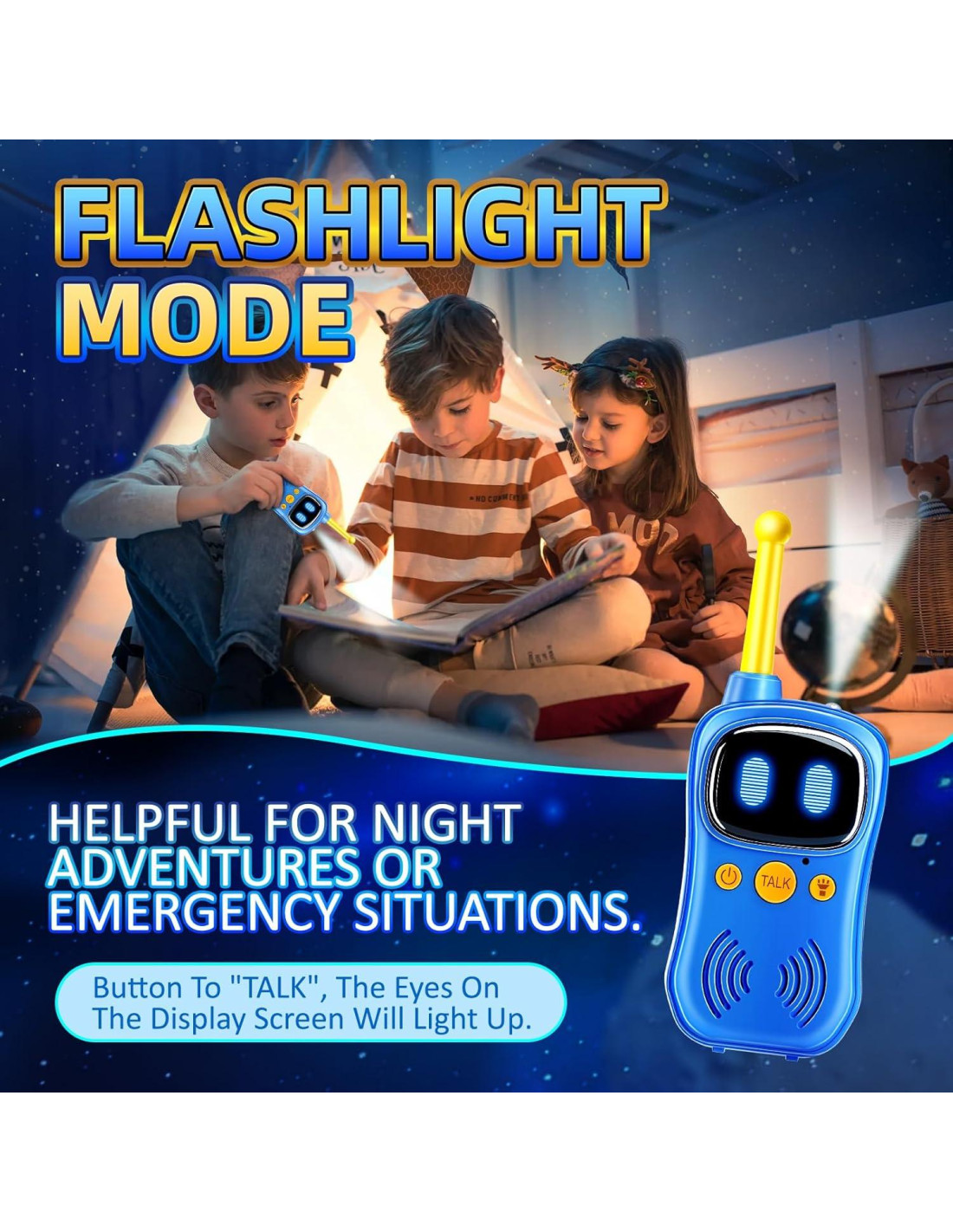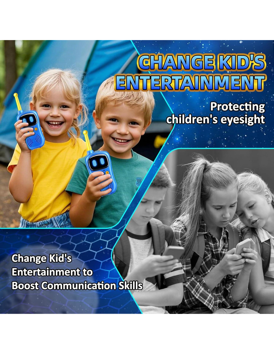 - Calidad de Sonido HD: La tecnología de Voz Clara Avanzada asegura que las voces de nuestros niños siempre sean altas y claras. Con comunicación no estática, el walkie-talkie tiene un rango de hasta 3000 pies (914.4 metros) en condiciones ideales, asegurando que los niños siempre estén conectados