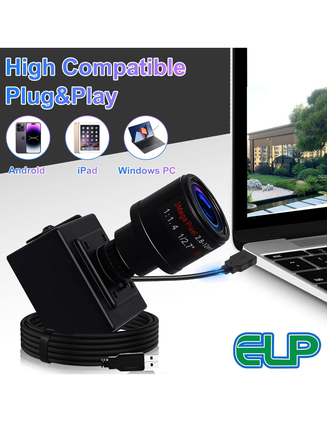 - Esta cámara usb de lente varifocal es Plug-&-Play (compatible con UVC), módulo de cámara USB2.0 con cable USB2.0 de 3 metros. Integrada con sensor de imagen CMOS OV2710 para un mejor rendimiento de imagen. El puerto de conexión USB en este módulo de cámara soporta transmisión de datos de alta velocidad, ocupa menos ancho de banda, mejora enormemente la eficiencia de trabajo, pero tener demasiadas aplicaciones de cámara en Windows puede afectar el uso, ya que la computadora no puede soportar suficiente ancho de banda y potencia de salida.