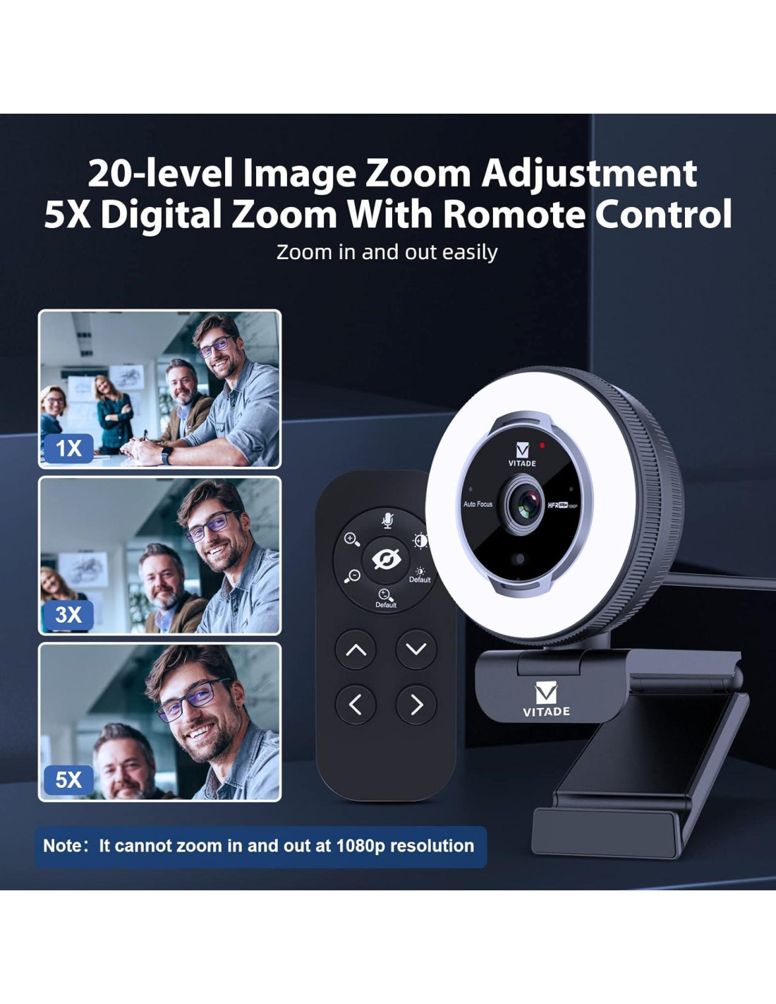 - Cámara web con control remoto omnidireccional RF 360. Controla tus videollamadas con un control remoto, así que incluso lejos del escritorio sigues a cargo. Zoom digital 5X por debajo de 1080p, desactivar video, silenciar, ajustar el FOV, balance de blancos, y más. Ajusta el brillo de la cámara web en Mac OS/Windows sin software. Esta es una gran conveniencia para los usuarios de Mac.