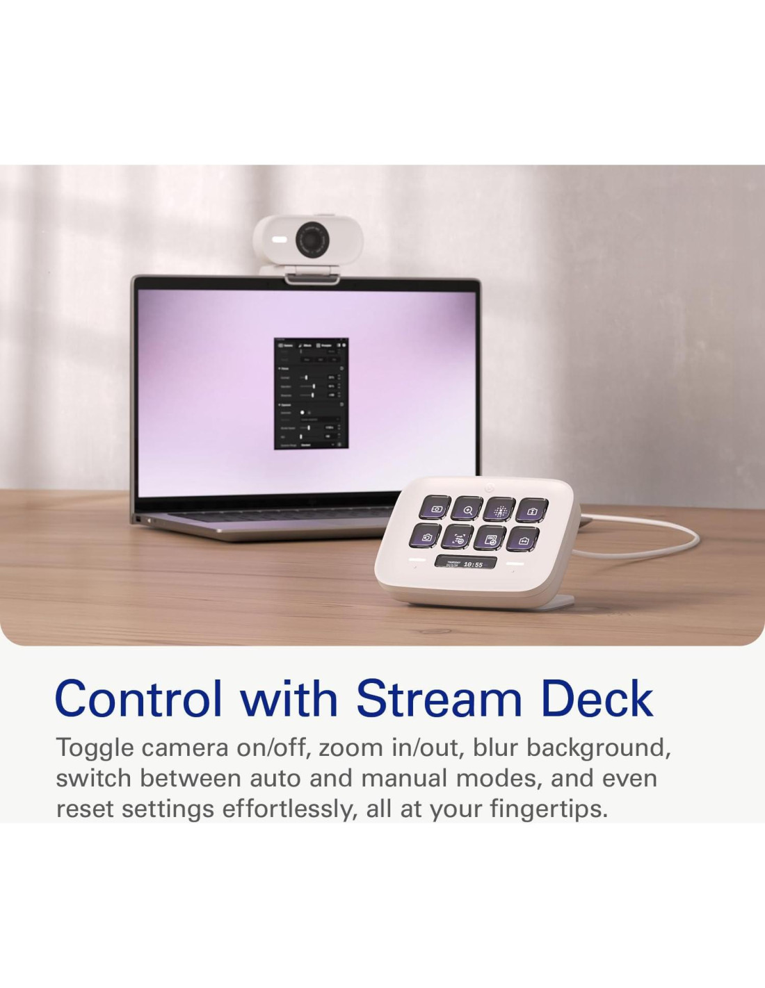 Gran video hecho fácil. Conoce Facecam Neo, una webcam plug-and-play que captura reuniones y transmisiones en vivo cotidianas en suave 1080p60 verdadero HD. Comenzar es rápido y fácil, incluso justo fuera de la caja, conectando a través de USB a tu portátil o escritorio. Así que puedes encender tu cámara con nueva confianza. Especificaciones técnicas Resoluciones soportadas (MJPG): 1080p60, 1080p30, 720p60, 720p30, 540p60, 540p30 Óptica: Lente AF de Elgato (enfoque automático) Rango de enfoque: 30 cm / 12 in - Apertura: f/2.0 Longitud focal: 26 mm (equivalente de formato completo) Campo de visión: 77 Sensor: sensor CMOS 1/2.9" Conexión: USB Tipo C (fijo) Punto de montaje: rosca de 1/4" Clase de video USB: estándar UVC v1.5 Dimensiones (AN x AL x FO): 88 x 32 x 40 mm | 3.5 x 1.3 x 1.6 in (sin montaje) Peso: 80 g | 0.18 lb (sin montaje), 110 g | 0.24 lb (con montaje) Requisitos del sistema Windows 10 (64 bits) o más reciente, CPU Intel o AMD macOS 12 o más reciente, CPU Intel o Apple iPadOS 17 o más reciente USB 2.0 (o posterior) Tipo C, USB 2.0 (o posterior) Tipo A (con adaptador, no incluido)