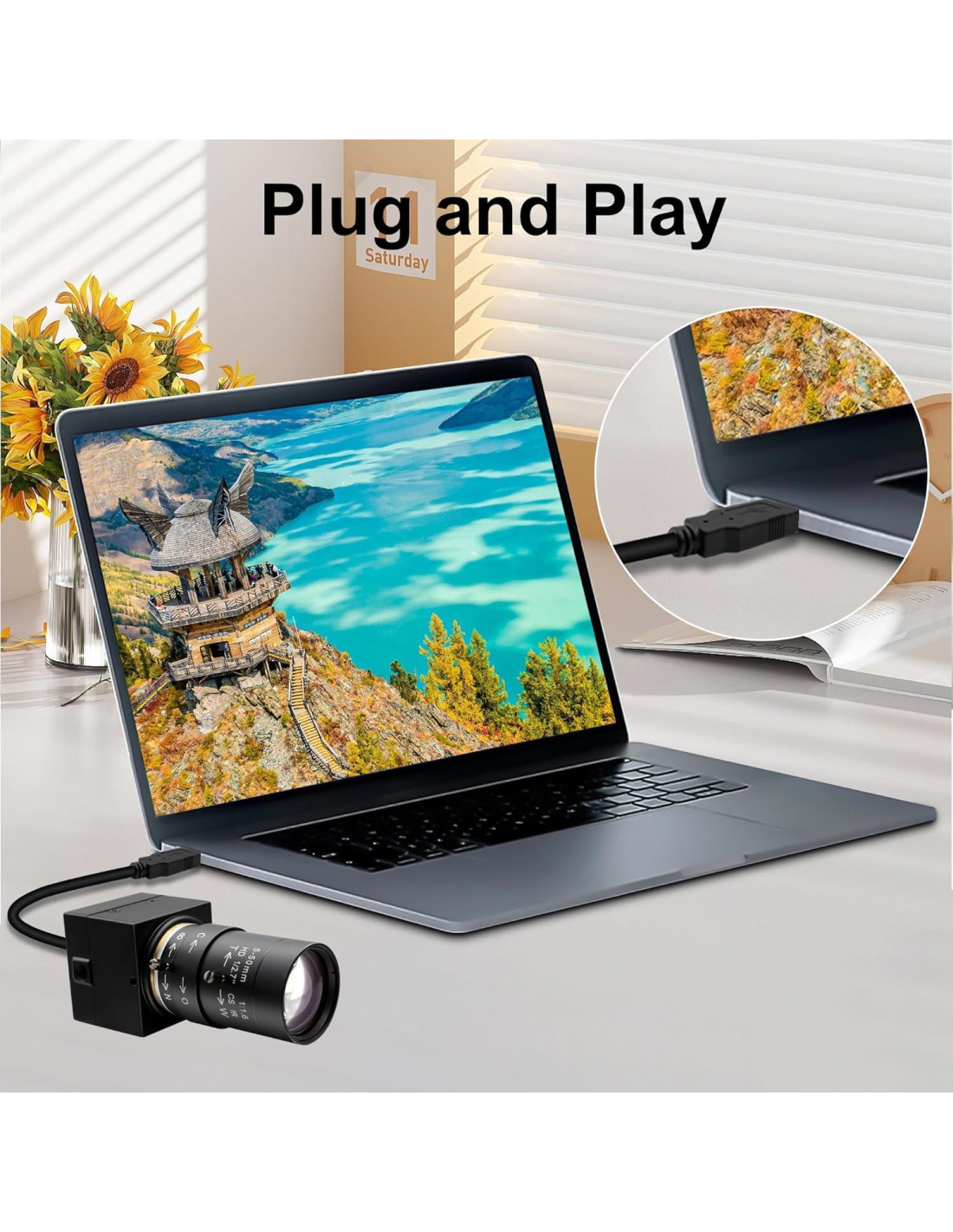 - Cámara USB HD 1080P - Lente 5-50mm ajustable 2MP Webcam con lente óptica especializada. Alta precisión y sin imágenes distorsionadas! Balance de blancos automático y corrección de color automática. La webcam captura sus clips en verdadero 1080p, y 30 fotogramas por segundo, max.frame entrega VGA 100 fotogramas por segundo, tecnología de alto píxel para imagen nítida y reproducción precisa del color.