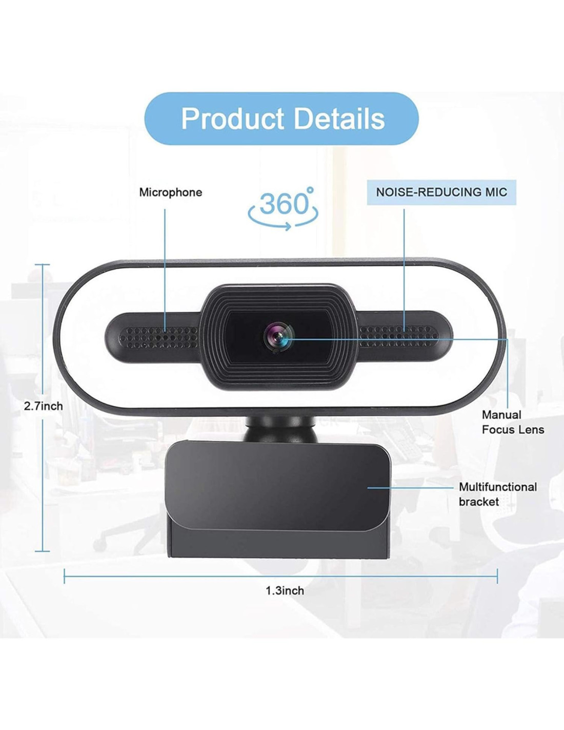- DISEÑO AJUSTABLE: Cámara web Full HD 1080p con luz de anillo incorporada que presenta 3 modos de iluminación ajustables: luz blanca, luz ordinaria y luz cálida. El brillo se puede ajustar para condiciones de iluminación ideales en entornos oscuros.