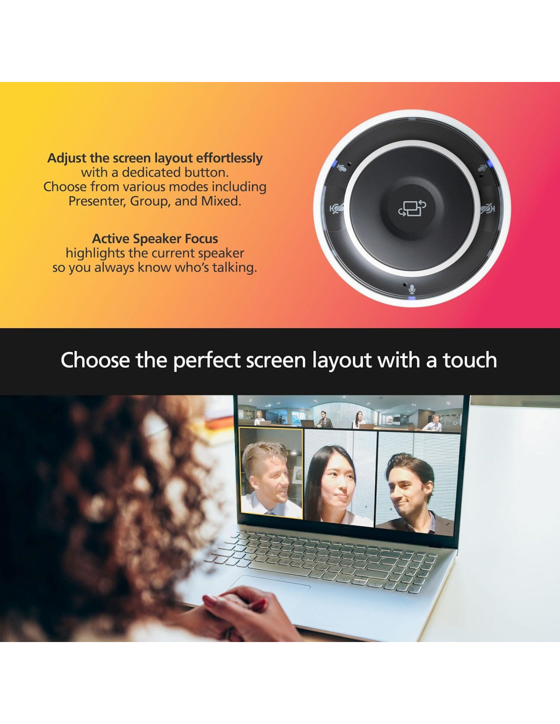 - ELIGE TU EXPERIENCIA DE REUNIÓN. Cambia sin esfuerzo entre diseños de pantalla con solo tocar un botón para una experiencia de reunión personalizada