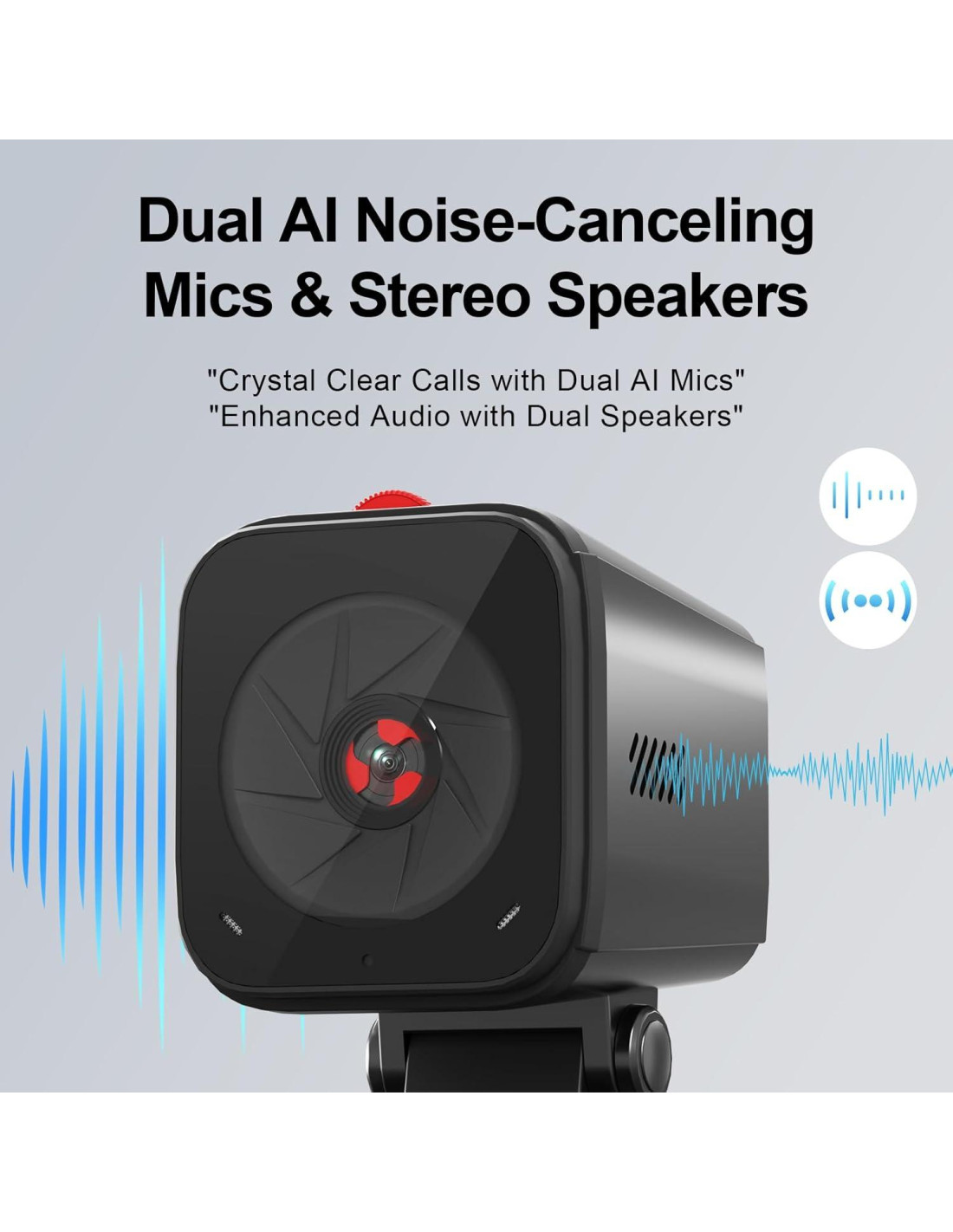 - [Micrófonos AI de Cancelación de Ruido Dual y Altavoces Estéreo] : Comunícate con confianza utilizando nuestra avanzada tecnología de audio. Los micrófonos duales con cancelación de ruido AI filtran el ruido de fondo, asegurando que tu voz se escuche claramente. Junto con los altavoces estéreo duales, el W100 ofrece una calidad de audio mejorada para una experiencia inmersiva durante llamadas y grabaciones.