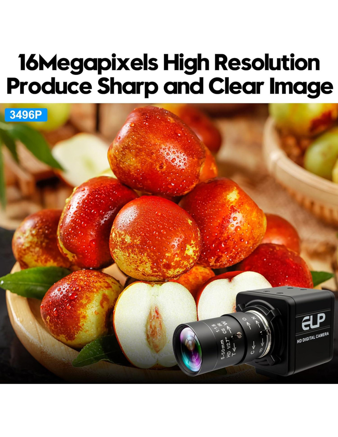 - Calidad de Alta Definición 16MP: cámara usb de alta resolución 3496P incorpora un sensor de imagen IMX298 de 1/2.8 pulgadas, asegurando imágenes nítidas y reproducción de color precisa con una resolución máxima de 4656 x 3496. Cable de 9.8ft (3m) ofrece conectividad conveniente a laptops, PCs, Raspberry Pi y dispositivos Jetson. Es una opción fantástica para aplicaciones industriales y ofrece un rendimiento y versatilidad excepcionales.