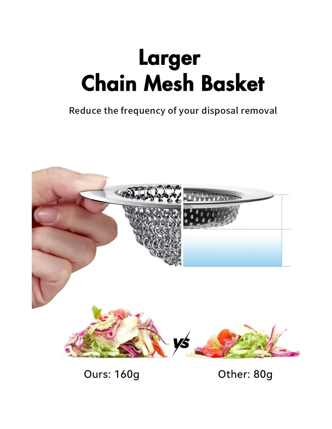- Material resistente y gran capacidad: Los coladores de fregadero de cocina aseguran alta resistencia a la oxidación. Está hecho de acero inoxidable 304. Incluso después de usarlo durante mucho tiempo, todavía se ve como nuevo. Cesta de malla de cadena más grande para que recojas más basura y reduzcas la frecuencia de limpieza.