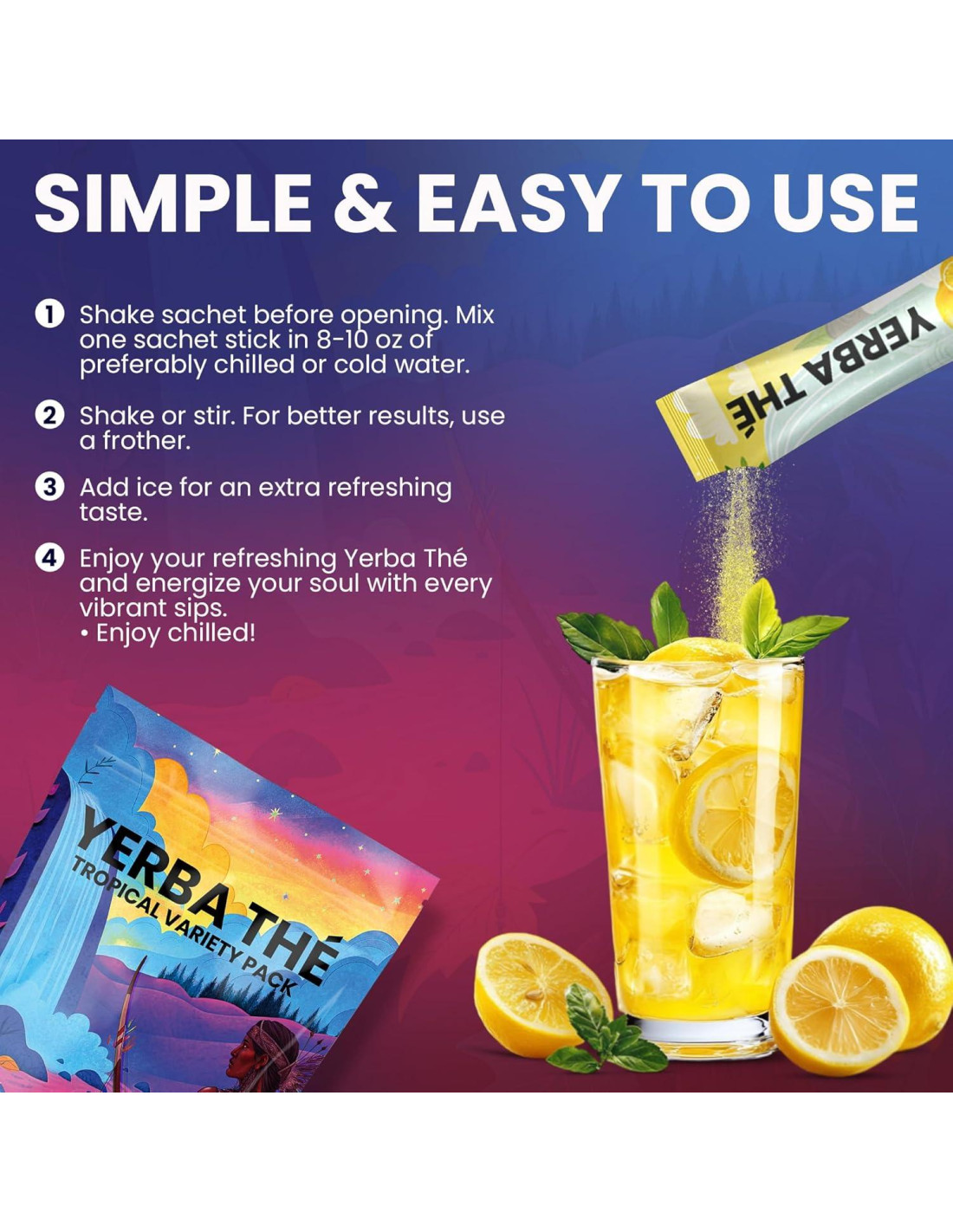 - Refrescamiento Instantáneo con Sabor a Fruta de la Pasión de Yerba Mate: Disfruta de un giro fresco con el sabor a fruta de la pasión de yerba mate en un conveniente polvo de té instantáneo. Ya sea que lo prefieras caliente o frío, esta bebida de yerba mate sabor a fruta de la pasión ofrece todos los beneficios del té de yerba y yerba mate sin complicaciones. Tu opción para una bebida refrescante de yerba mate en cualquier lugar y en cualquier momento.
