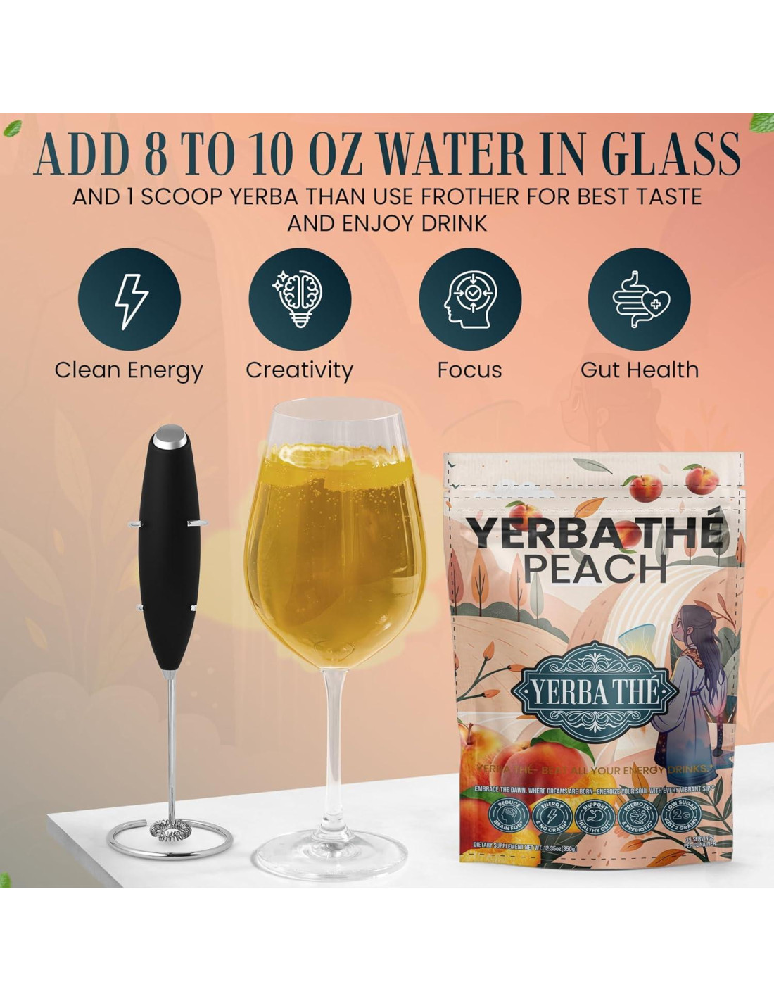 - Refrescante Instantáneo con Sabor a Durazno de Yerba Mate: Disfruta de un giro fresco con el sabor a durazno de yerba mate en un conveniente polvo de té instantáneo. Ya sea que lo prefieras caliente o frío, esta bebida de yerba mate con sabor a durazno ofrece todos los beneficios del té de yerba y yerba mate sin complicaciones. Tu opción para una bebida refrescante de yerba mate en cualquier lugar y en cualquier momento.