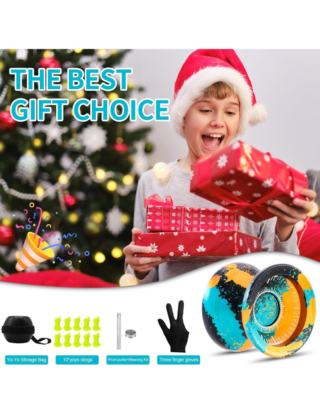 - [Adecuado para todos los niveles de jugadores] El FETESNICE YOYO 003 es un yoyo profesional que atiende a una amplia gama de usuarios, desde principiantes hasta jugadores avanzados. Este yoyo para niños ofrece una opción responsiva para los entusiastas más jóvenes que recién comienzan su viaje con el yoyo. Para los jugadores adultos, presenta un diseño de yoyo no responsivo, lo que lo hace perfecto para ejecutar trucos y maniobras complejas. Esta versatilidad lo convierte en una opción ideal tanto para el juego casual como para la competencia seria.