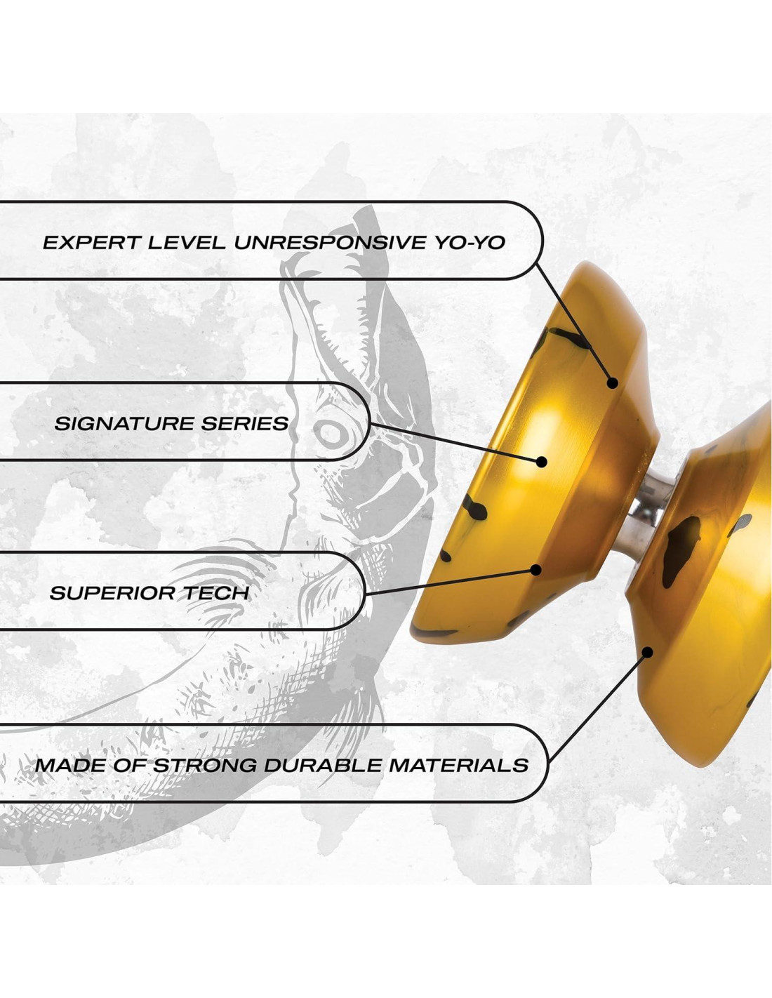 - ESPECIFICACIONES: Color: Dorado con Splash | Peso: 64g (0,14 lbs) | Diámetro: 58mm | Ancho: 41.85mm | Respuesta: 19mm pegatinas Duncan SG. | Incluye 1 yo-yo.