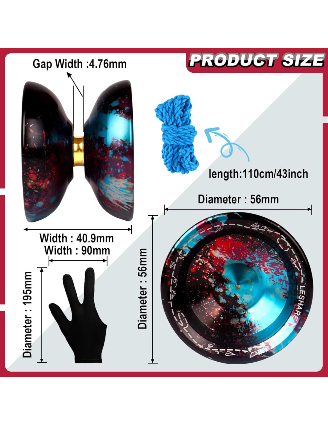 - Yoyo de Metal: El yoyo de aluminio está hecho de material metálico de grado aeronáutico 6061, que es fuerte, resistente a caídas y no se daña fácilmente. El yoyo mariposa con rodamientos de acero inoxidable de alta precisión. Sin óxido, resistencia a altas temperaturas y larga vida útil son propicias para la práctica duradera de trucos de yoyo. (1A, 3A, 5A)