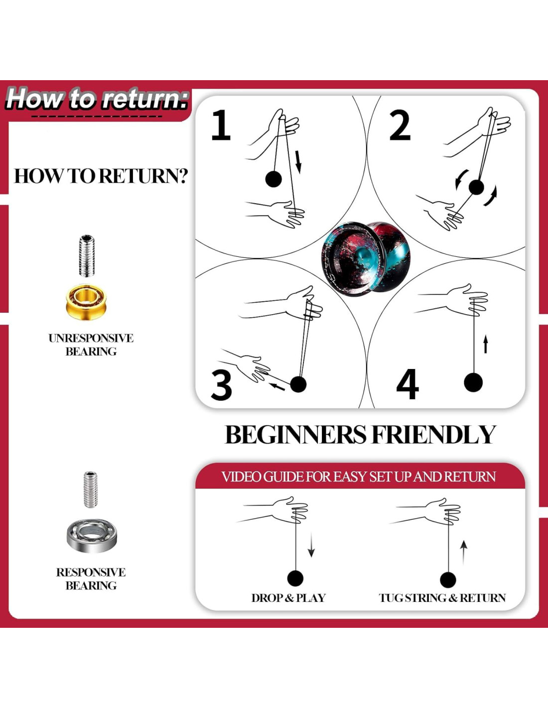 - Paquete Elegante: Con el paquete elegante, este yoyo es un regalo ideal para cumpleaños, vacaciones, Navidad, Año Nuevo y más. Se enviarán cinco cuerdas de yoyo de repuesto, un guante de yoyo, un rodamiento responsivo y 1x Instrucciones de uso de Yoyo como regalo. ¡Incluye todo lo que necesitas para comenzar! ¡Solo hazlo! proporcionamos un servicio postventa más completo. Si alguna vez tienes preguntas o enfrentas un problema, por favor, danos la oportunidad de abordar tus inquietudes.