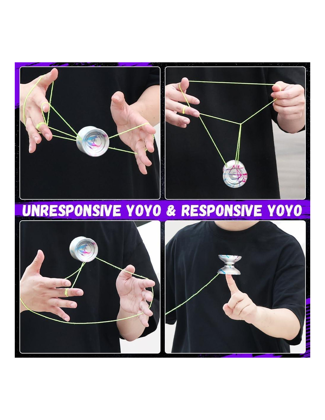 - REGALO PERFECTO PARA PRINCIPIANTES EN YOYO: Si estás buscando un yoyo para principiantes o si quieres regalar un juguete a tu hijo, entonces el X8 responsivo es genial para la diversión familiar. Lista del paquete 1* yoyo responsivo X8, 10* cuerdas coloridas, 1* estuche para yoyo, 1* rodamiento no responsivo de repuesto + M4* eje de 10 mm, herramientas para quitar rodamientos y manual.