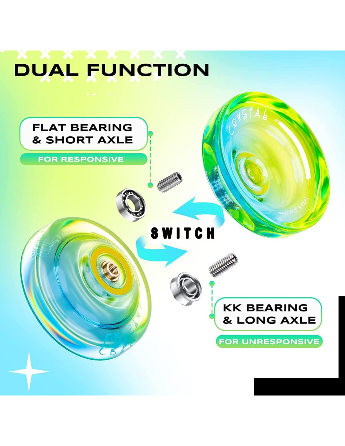 - YOYO RESPONSIVO: el yoyo K2 cristal se adapta a 2 tipos diferentes de rodamientos de bola de yoyo. Lo que has recibido es un yoyo responsivo con rodamiento plano y delgado. Regresará automáticamente a tu mano cuando lo tires. El rodamiento delgado es excelente para que los niños principiantes aprendan trucos básicos de yoyo