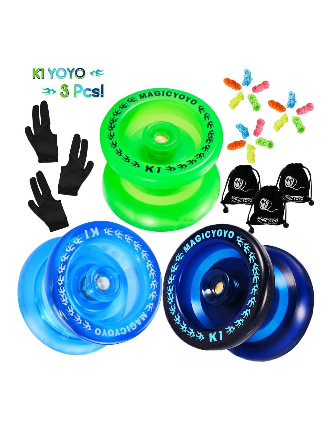 - 3 Yoyos en 1 Paquete de Regalo, es el primer yoyo para un principiante total. Colores Azul Cristal, Azul Oscuro, Verde que Brilla en la Oscuridad