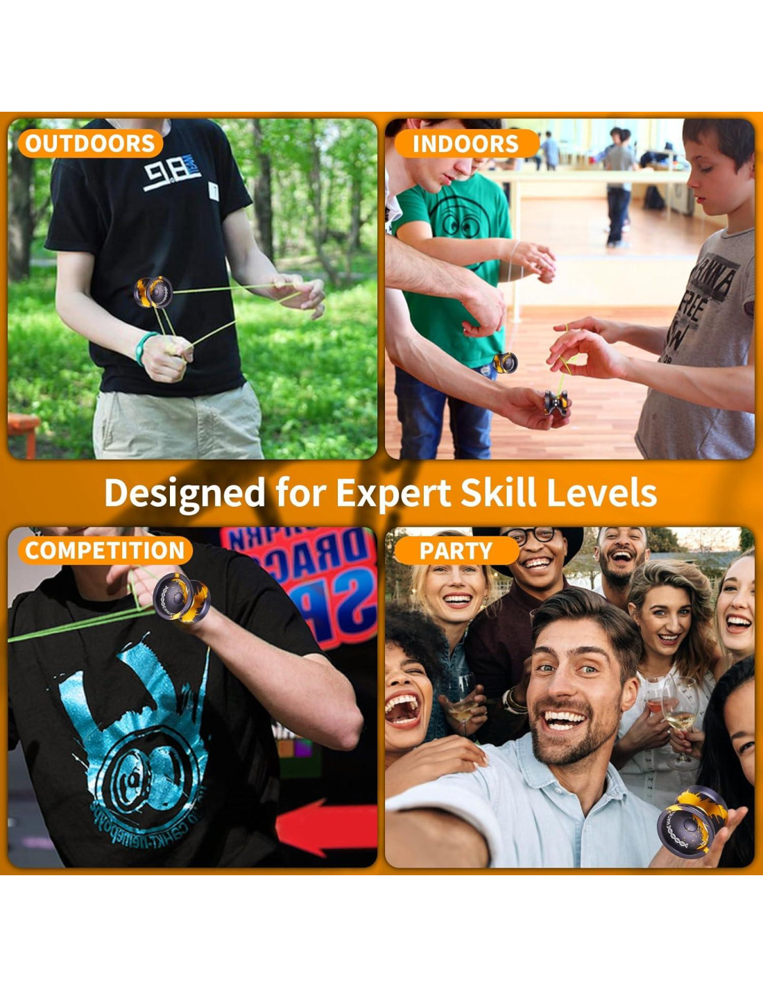 - Extremadamente Duradero y de Larga Duración: Este yoyo profesional es un producto diseñado a través de ingeniería de precisión. Su distribución de peso está optimizada para soportar el desgaste del uso diario, asegurando una larga vida y un rendimiento estable. Además, soporta giros únicos con el dedo, colores únicos y efectos de giro, que son perfectos para aquellos que quieren mostrar sus habilidades con un yoyo llamativo que se destaque entre la multitud.